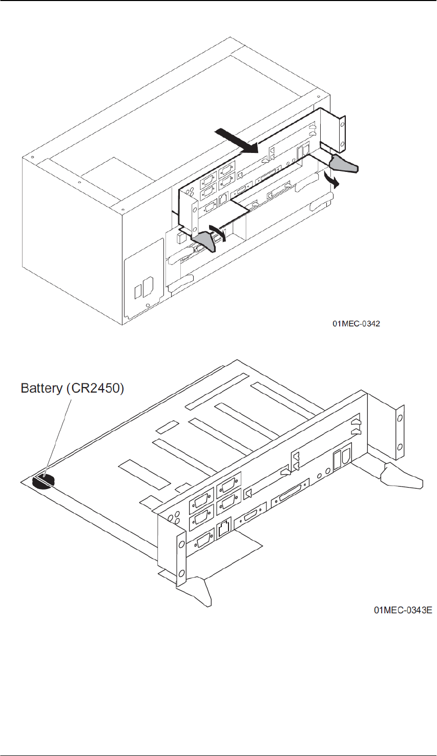Edition 1.0 N X T I I 用户高级培训手册 FMC-1010-003-0 C 4-17 FUJI MACHINE MFG. CO., LTD 5. 请拉出 CPU 电路板。 6. 请更换电池。将电池的前方抬起后从电池套上拆下。安装时,请从后方安装并向下压入。 7. 电池更换后,按照与拆除相反的顺序安装 CPU 箱并将其安装到模组上。