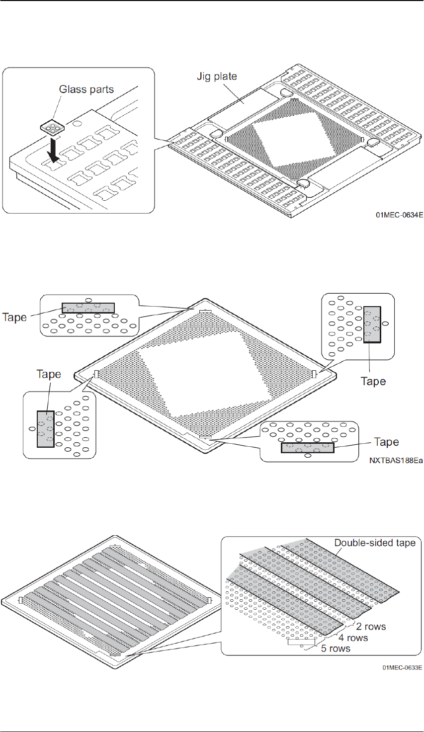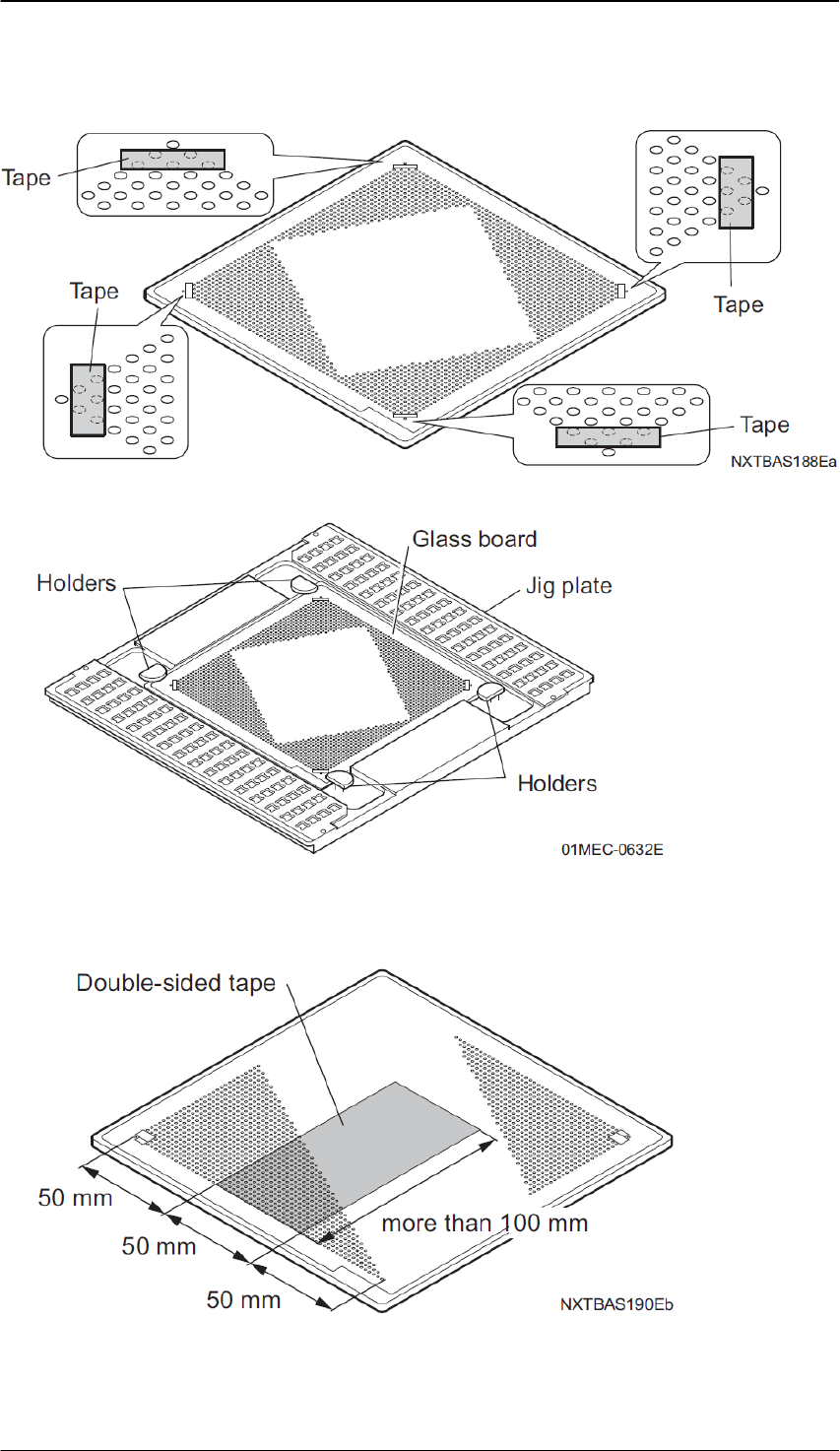 3. 请在玻璃电路板上用双面粘纸(约 50mm 宽, 100mm 以上)粘贴。此时,请注意在 4
