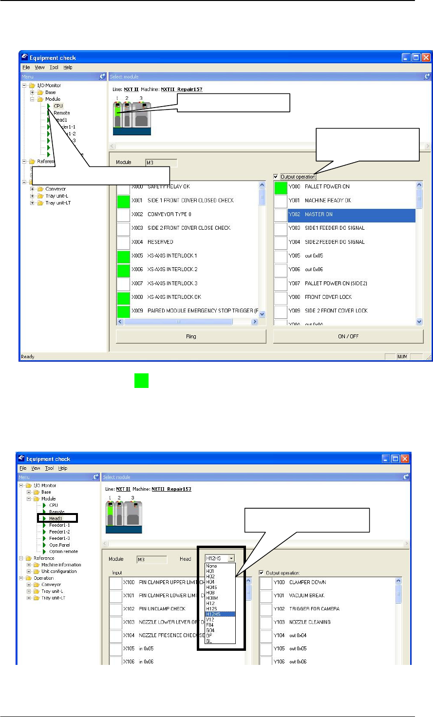 Edition 1.0 N X T I I 用户高级培训手册 FMC-1010-003-0 C 7-3 FUJI MACHINE MFG. CO., LTD 7. 在左侧的菜单中选择 [Module] – [CPU] ,用来唤醒工作头。 8. 将 [Output operation] 栏前的对勾 ✓ 去掉。 9. 如果需要确认其他模组上的 I/O 信号, 请首先去除对勾,然后再重新选择目标模组即可。 7.3 启动 Motion Tool…