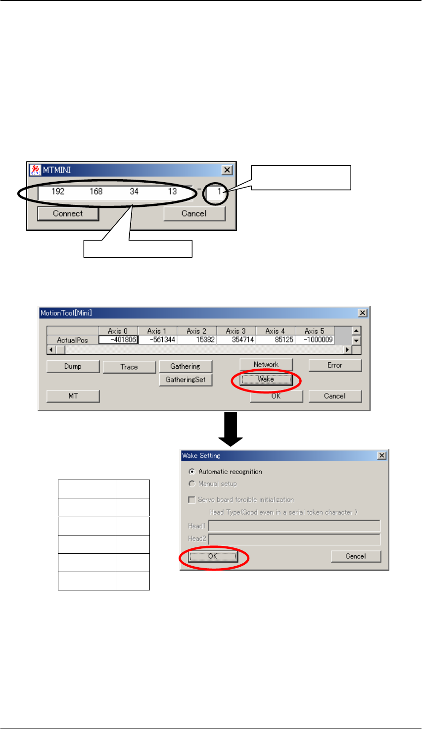 3. 为了启动伺服放大器,选择[Wake] [Automatic recognition],大约等待 10 秒钟左右即