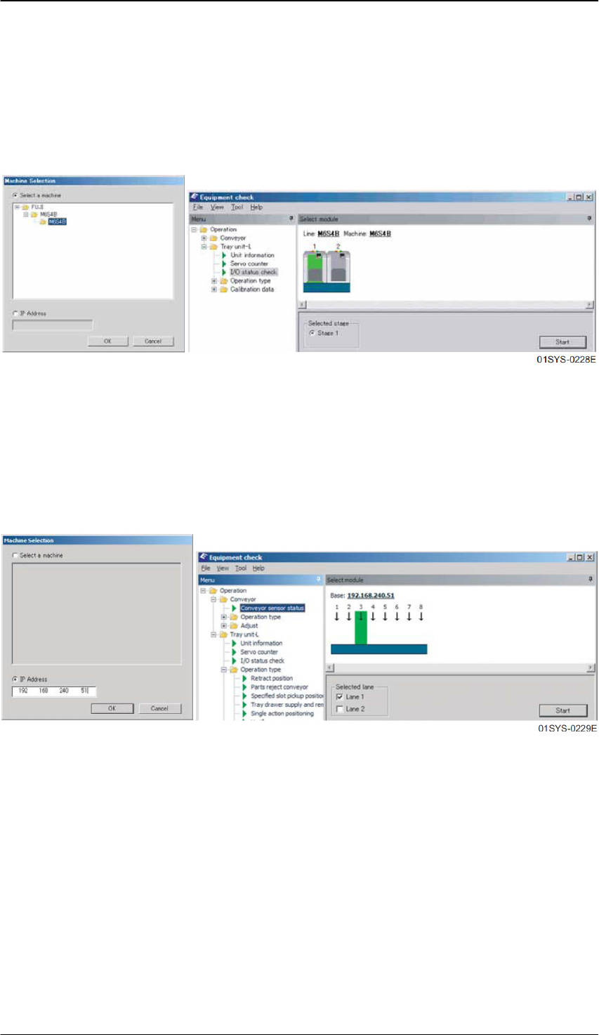 Edition 1.0 N X T I I 用户高级培训手册 FMC-1010-003-0 C 8-11 FUJI MACHINE MFG. CO., LTD 8.10.2 生产线上的机器的确认 当生产线上发生故障, 现场进行恢复作业的时候, 在现场使用的 PC 上启动 EquipmentCheck , 进行机器的确认。 首先, 在 [Machine Selection] 内选择目标机器。 接着, 从 EquipCheck 窗口中的 […