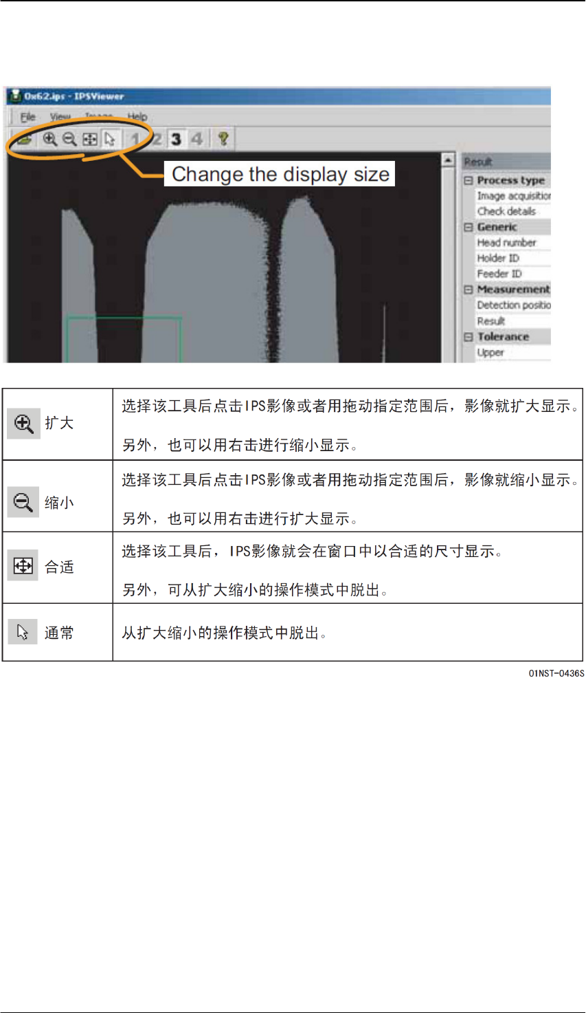 通过菜单栏或工具栏的操作可以变更所显示的 IPS 影像的尺寸。