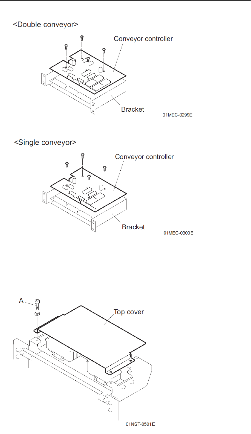 7. 拆下螺丝(4 根),将搬运轨道控制箱从固定外壳上拆除并更换。