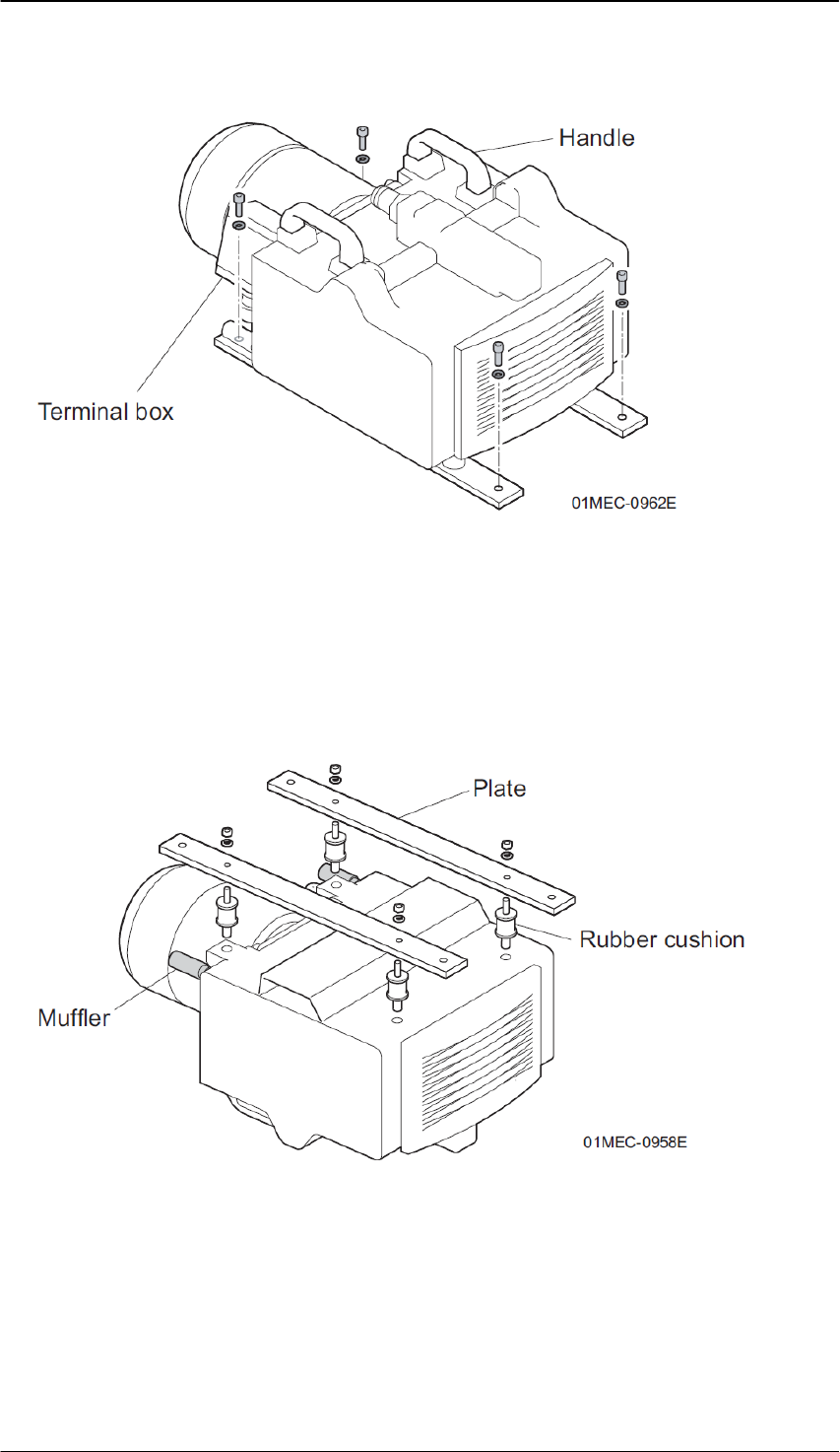 8. 请拆除真空泵的固定螺栓(4 根)。请握住手柄,抬起真空泵从机器中取出。