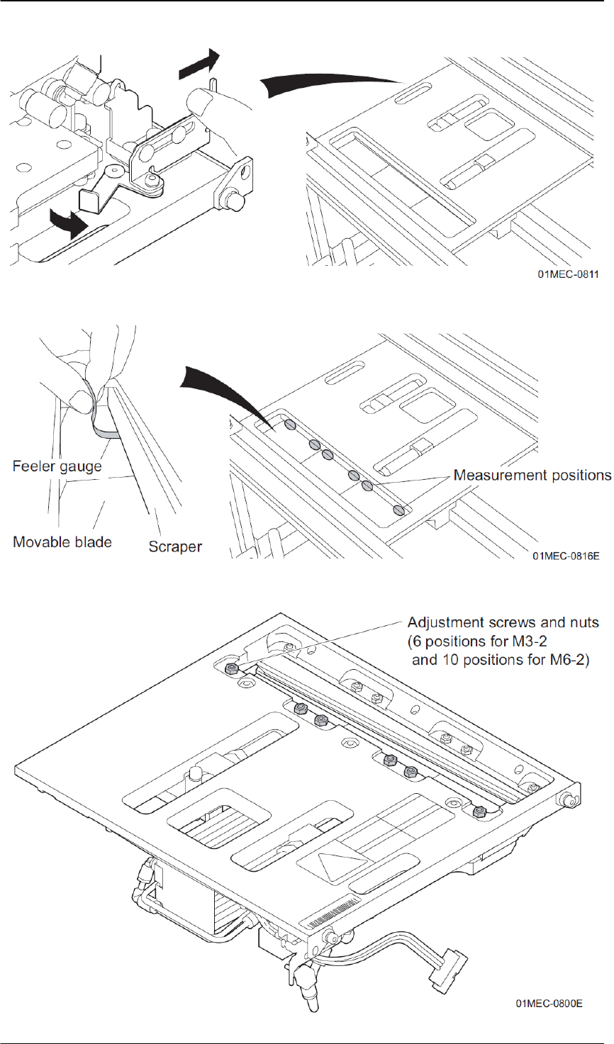 11. 把塞尺插入到可动刀刃和固定刀刃之间的间隙中调查间隙。请确认厚度进入 0.02mm 而不