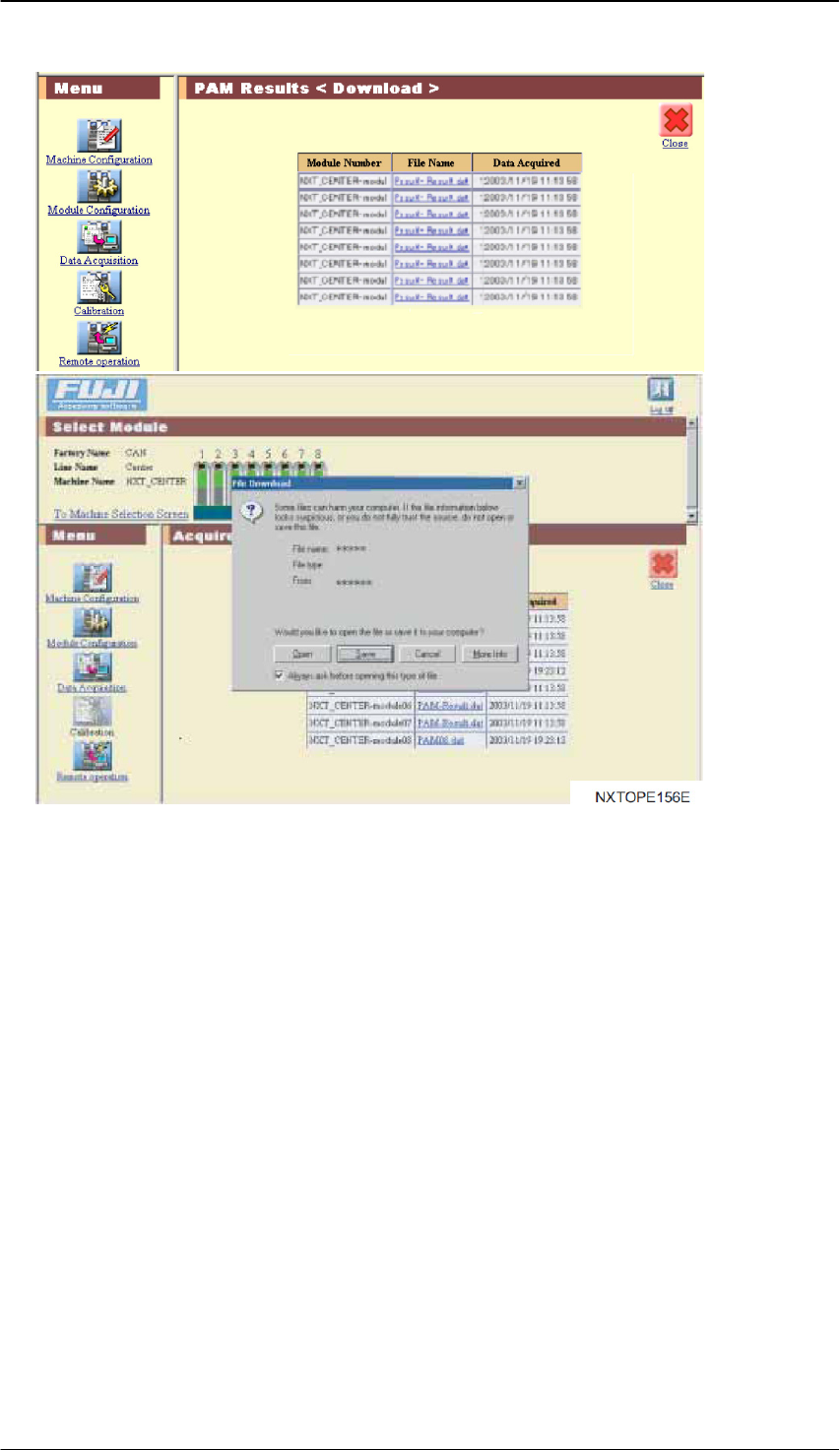 文件的一览表。从此一览表选择文件保存后,测定结果数据从服务器下载到客户端电脑