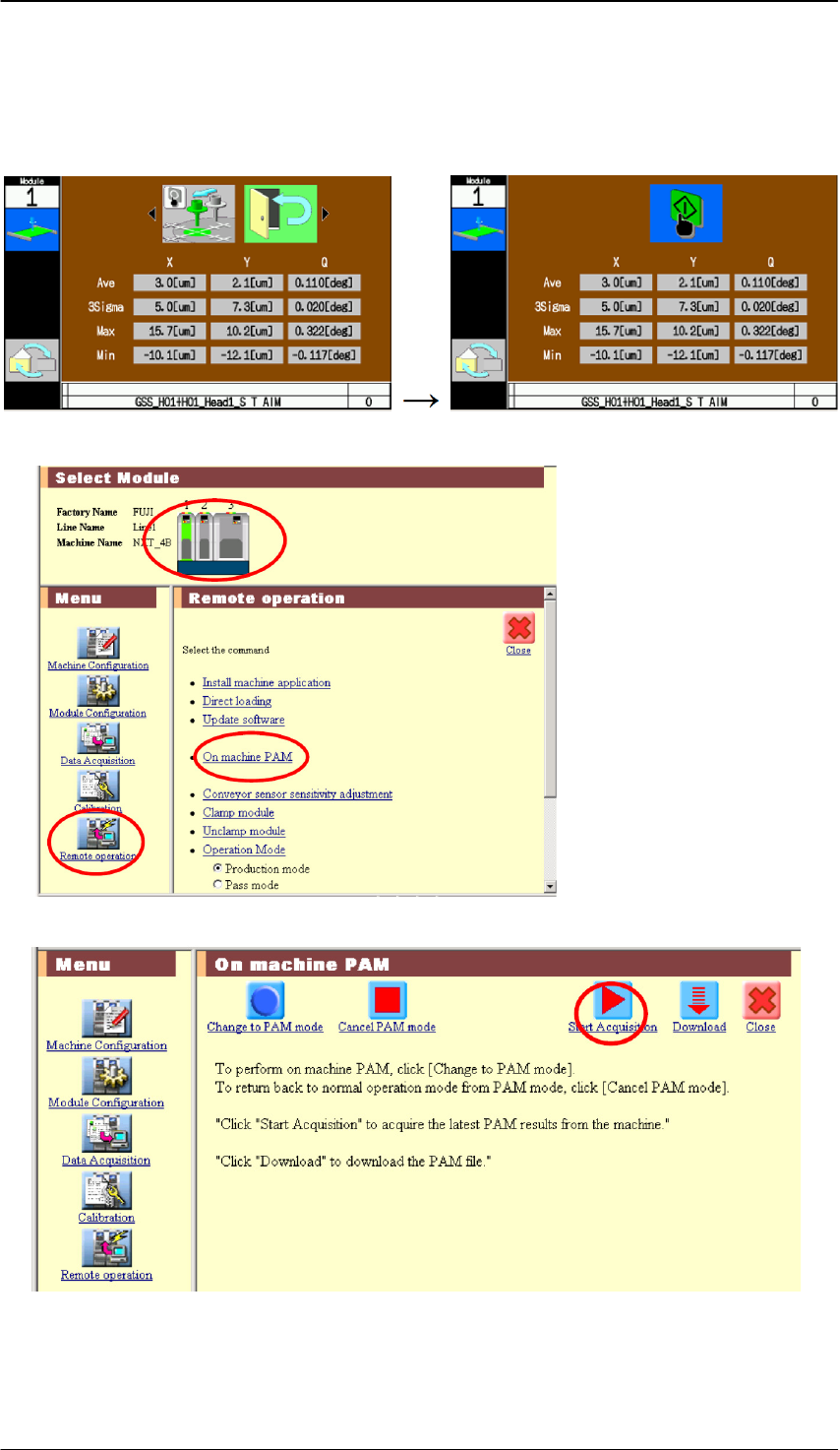 2. 在机器设定画面上,请确认取得 PAM 测定结果的模组。选择「远程操作」-「机上 PAM」。