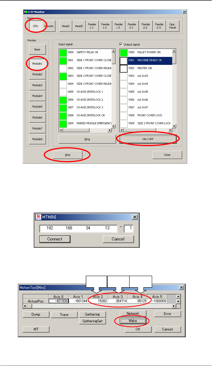 1) 在出现的对话框里输入目标基座的 IP address 和 Module No,然后选择[Connect]。