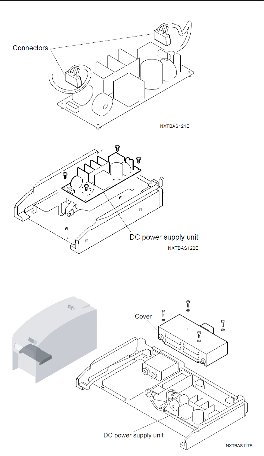 Edition 1.0 N X T I I 用户高级培训手册 FMC-1010-003-0 C 3-39 FUJI MACHINE MFG. CO., LTD 3. 取下连接在 DC 电源上的插座。 4. 拆下螺丝 (4 根 ) ,从托架基座上拆除 DC 电源并更换。 3.14.3 M6-2 模组的时候 1. 将主电源开关 OFF 。 2. 拆下螺丝 (4 根 ) ,从托架基座上拆下 DC 电源盖罩。