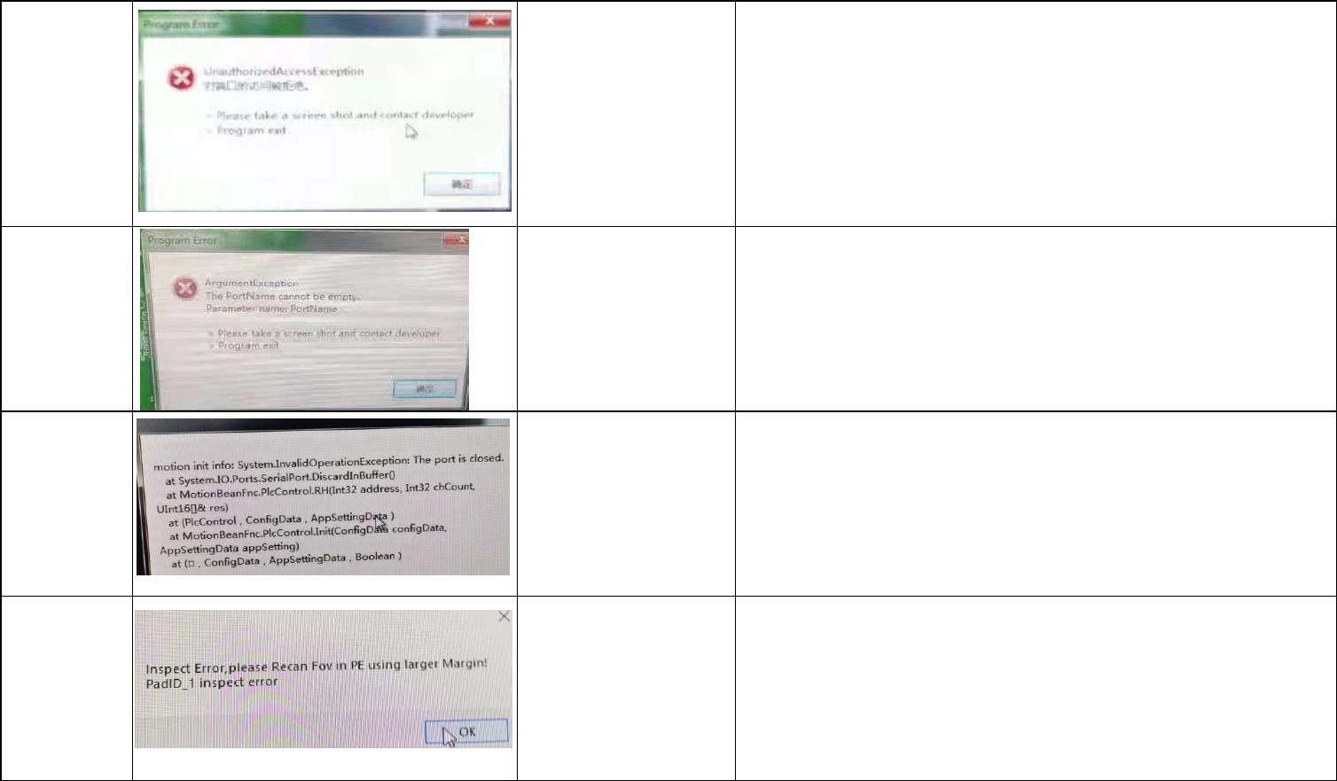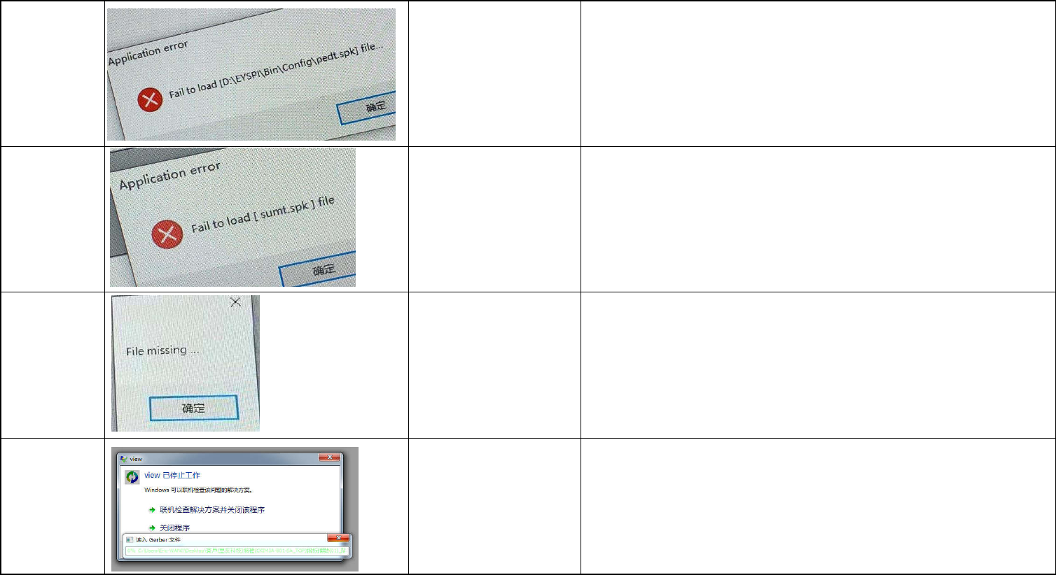 72 UI测试过程中报错 UI条码设置界面,没有开启外接条码,但是COM有启 用了,关掉就可以 73 UI测试过程中报错 通讯2给个COM3就不报了 74 打开UI软件报此信 息 断电重启和恢复BIN都不行,重装系统才好 75 测试过程报这个 JOB有用到一些特殊功能,打包问题,要升级版本