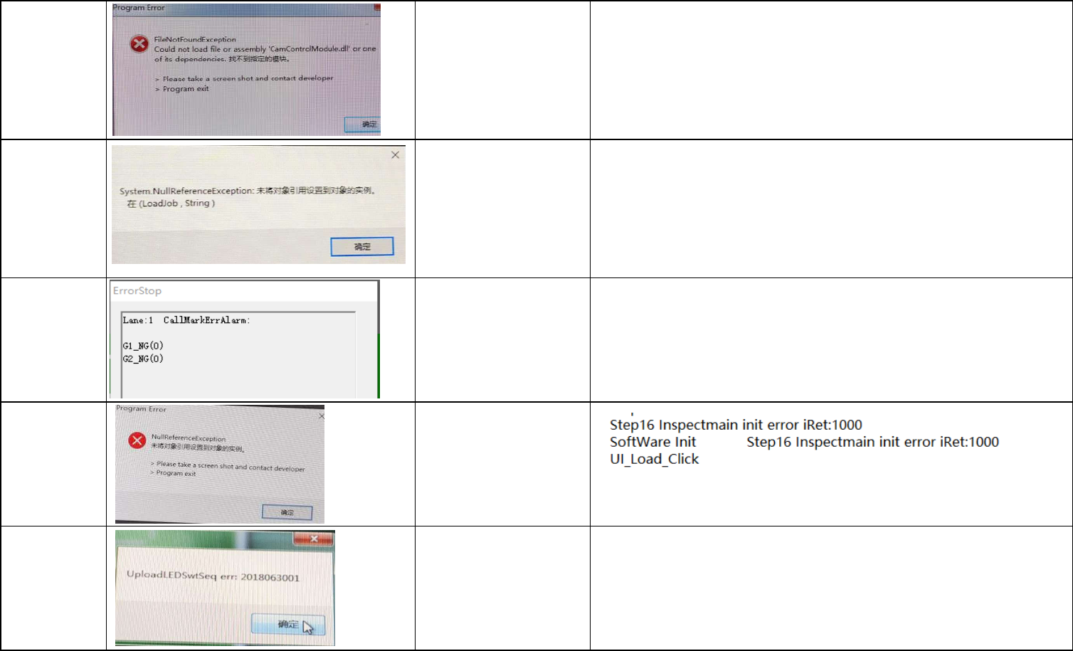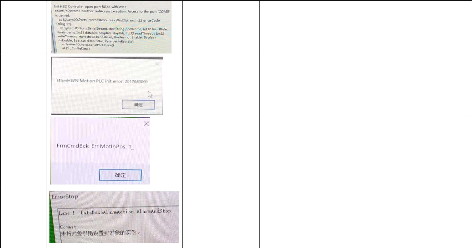 85 UI开启报错 COM5端口的线接到其他端口 v3tool可以开起来,但是UI会报。重装系统可以了。 应该是电脑中毒了。 86 打开UI软件报此信 息 重新插拔网线,断电重启后OK 87 打开UI软件报此信 息 马达到位,GXY信号线查一下。capmot关掉确认一下 88 打开UI软件报此信 息 V2 MYSQL数据库清空后重新跑就不会了