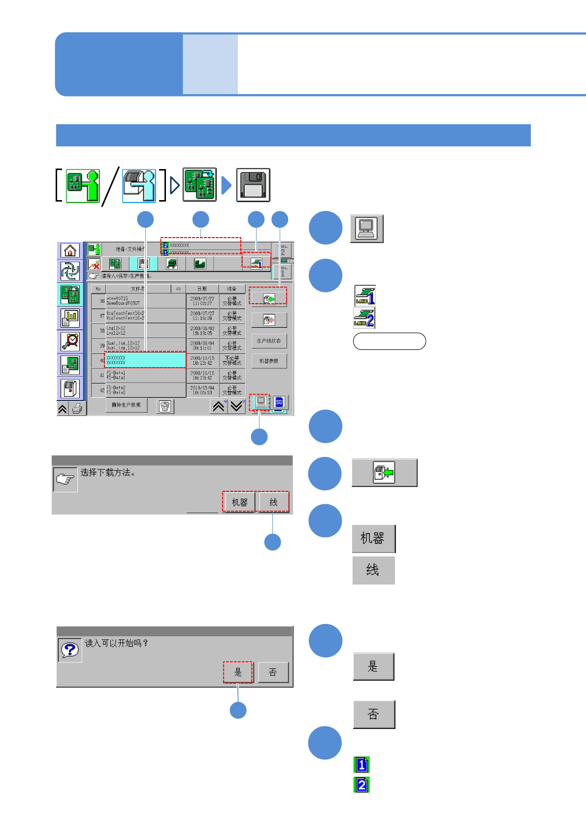 NPM-W 2 EJM7DC-MB-02O-02 2-3-3 -2 4 确认提示 1 2 2 3 4 3 选择文件 插入 SD 卡 ( 参数光盘 ) 5 ■从 SD 卡把机器参数读入到设备,从设备保存到 SD 卡,对其操作方法进行说明。 :保存 1 2 3 选择数据的读入和保存 :读入 1 2 3 5 ■不读入时
