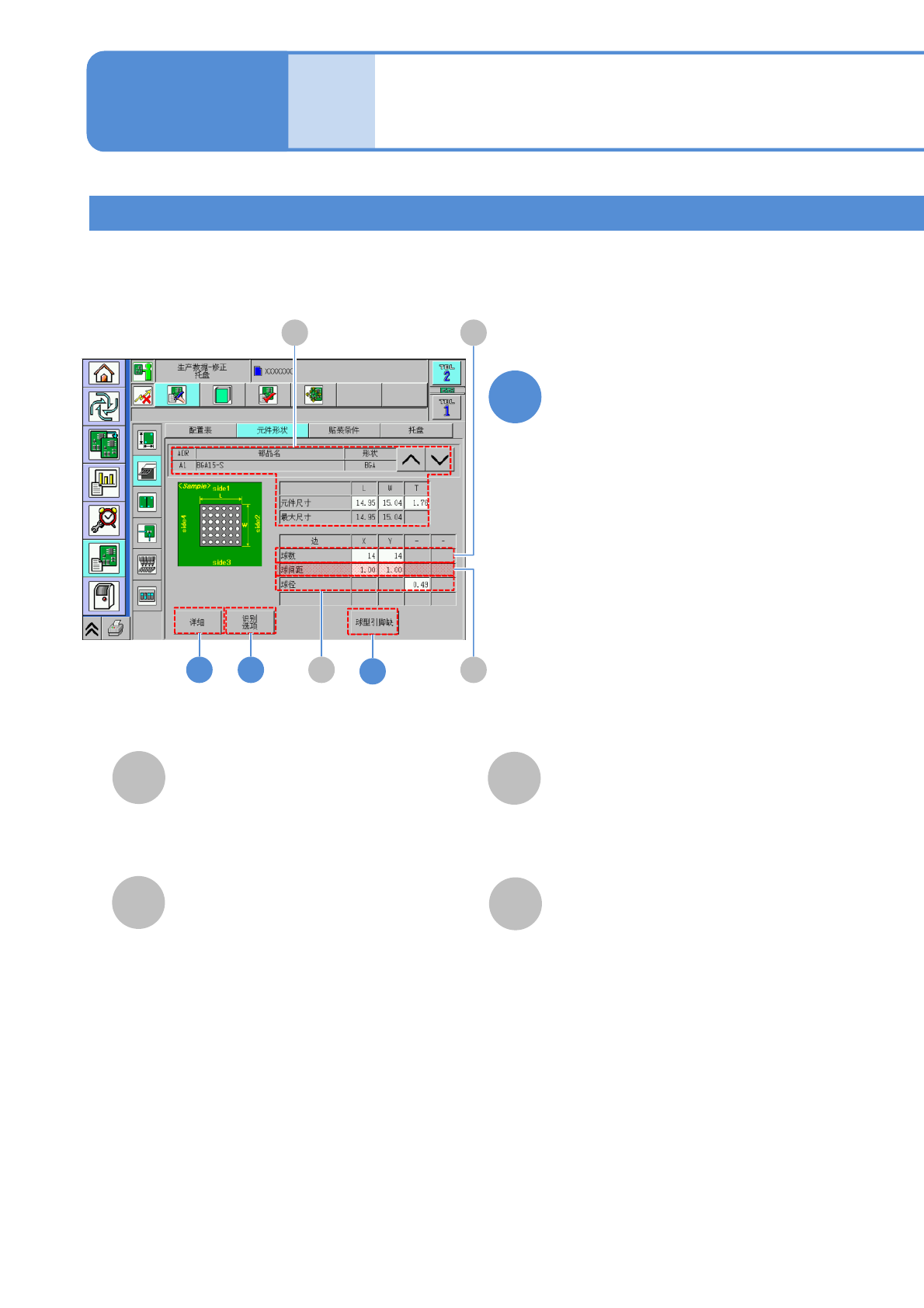 NPM-W 2 EJM7DC-MB-06O-00 数据 修改 操作篇 6-1-8 6-1-8 -9 元件形状数据的修改 5 B A D 2 X: side1 、 side3 的焊锡 球数量。 Y: side2 、 side4 的焊锡 球数量。 ●单位 : 个 3 A 元件信息 ( → P.6-1-8 -1 ) 焊锡球数量 C B C X: side1 、 side3 的焊锡 球间距。 Y: side2 、 side4 的焊锡 球间距。 …