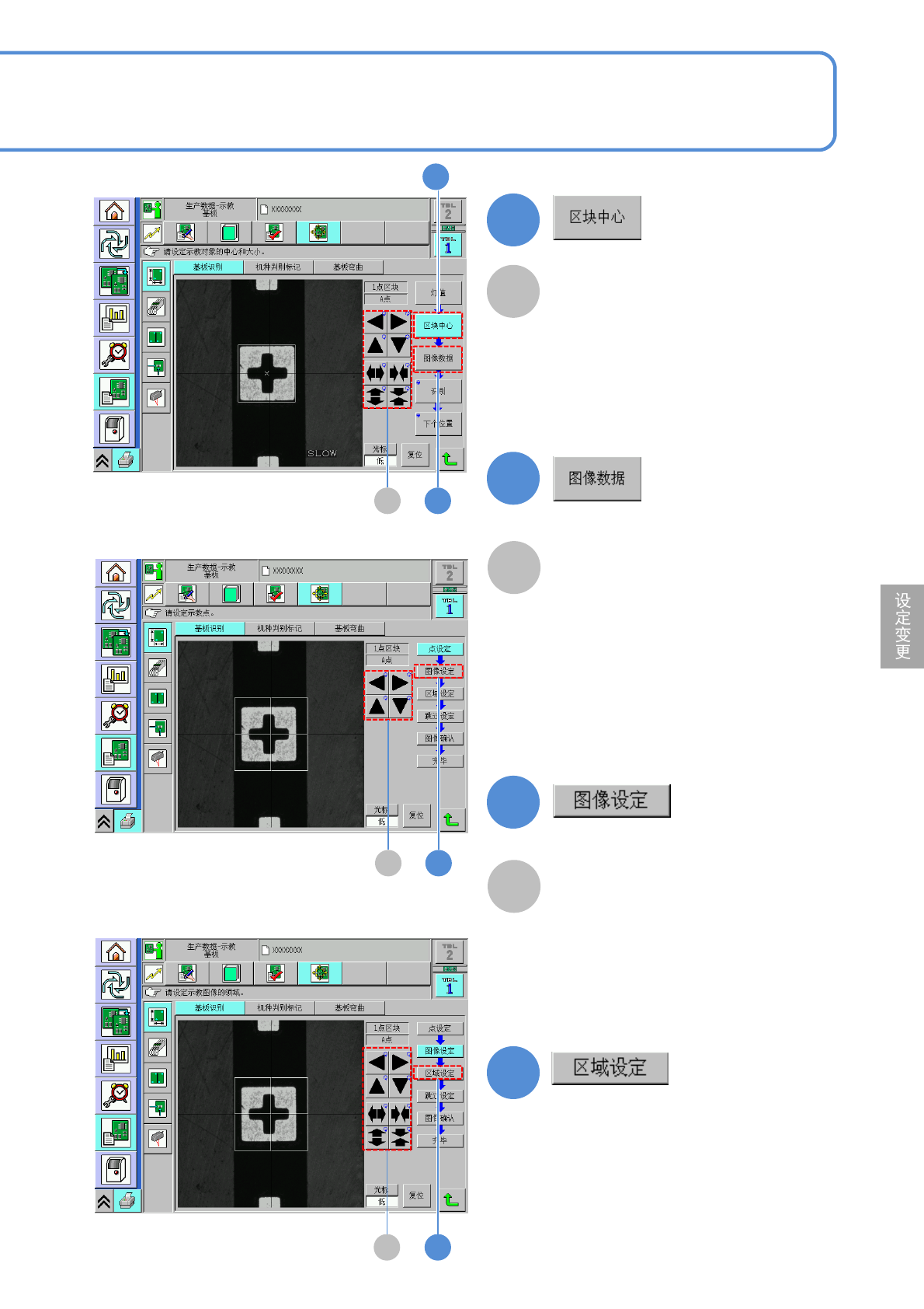 NPM-W 2 EJM7DC-MB-06O-00 6-2-2 -8 7 8 9 B C C D D B 6 6 7 8 9 移动窗口,或变更窗口尺寸,以便对 准校 正对象的中心。 设定用于区块匹配识别的图像区域。 移动窗口,或变更窗口尺寸,以便对 准校 正对象的中心。