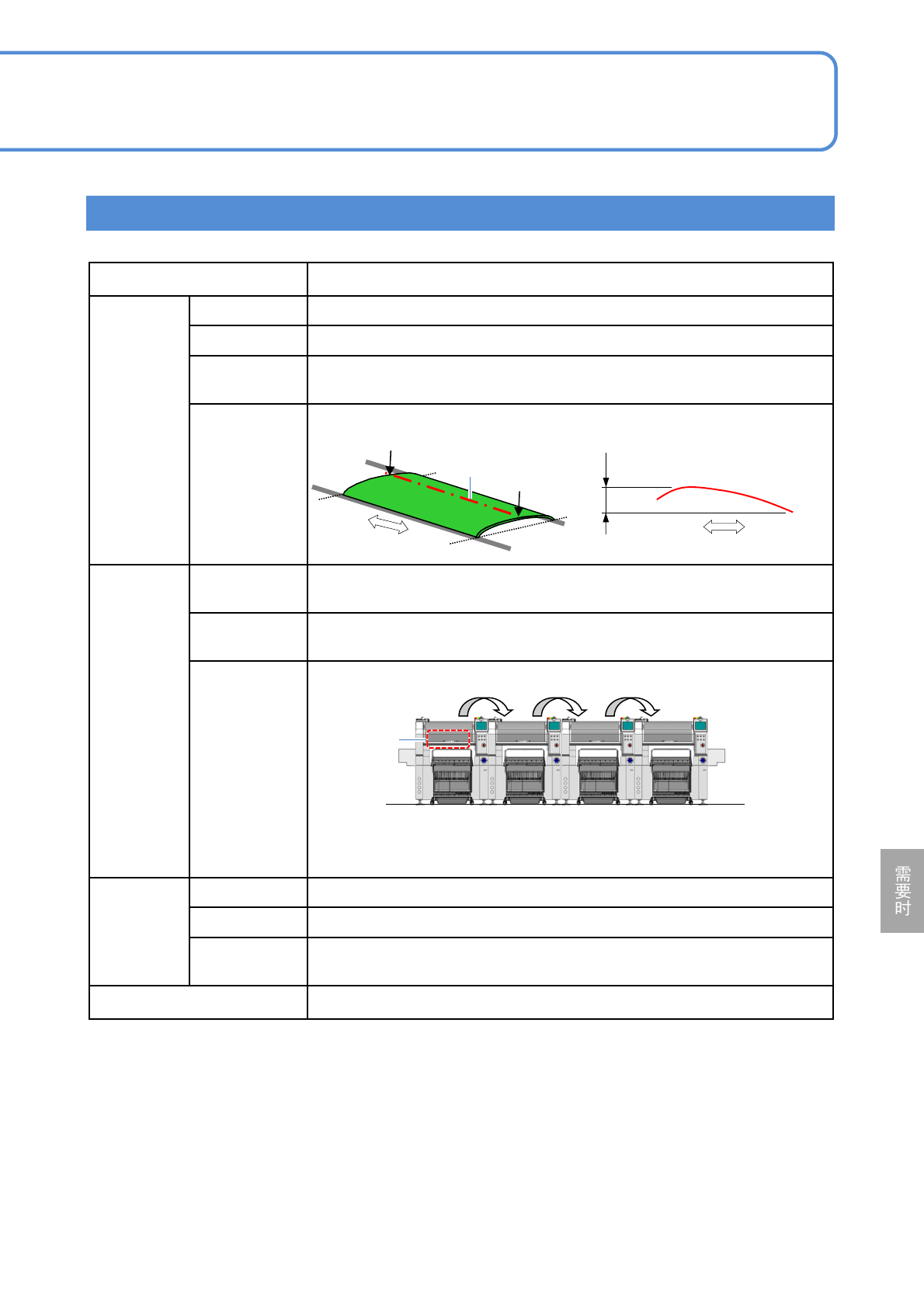 NPM-W 2 EJM7DC-MB-09O-02 规格 9-1-8 -1 高度传感器 1 外观 对象基板 基板厚度 0.3 ~ 8.0 mm 基板材质 玻璃环氧、纸苯酚 ( 陶瓷:另外个别对应 ) 测量面材质 铜箔+阻抗面、铜箔面、丝网面、陶 瓷面需存在 1.5 × 1.5 mm 以上的区域。 透明、半透明部位是对象外。 ( 玻璃环氧材料面等 ) 功能 局部基板高度 控制功能 测量复数点的描绘点胶位置附近的基 板弯曲 ( 高度 ) ,补…