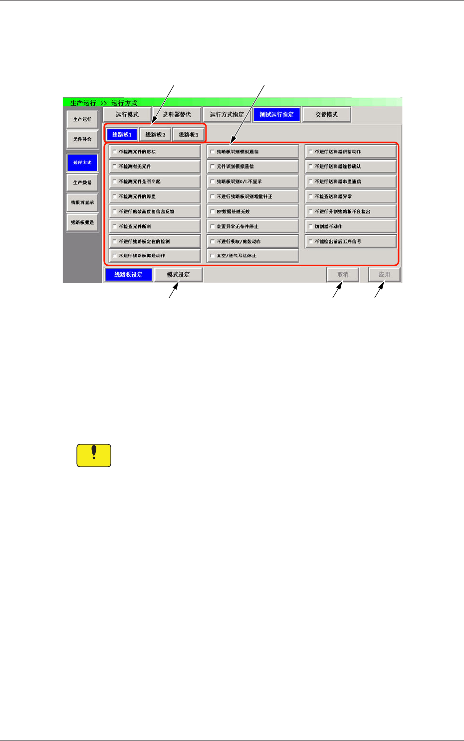 测试运行线路板最多可以保存 3 个线路板,可以在模式设定中选择使