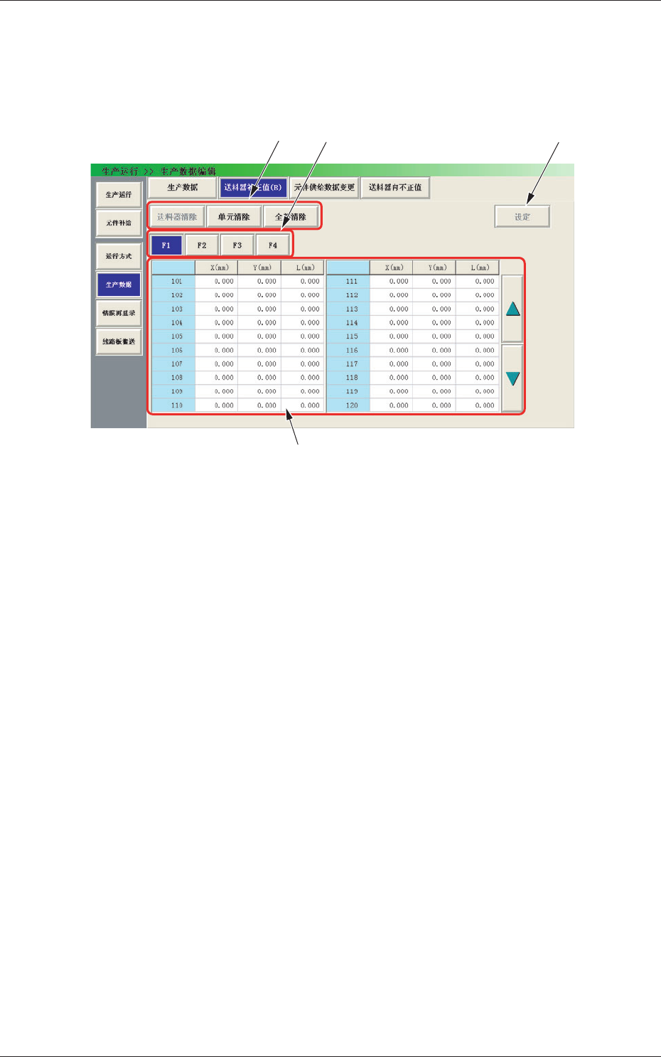 按 [ 送料器补正值 (B)] 按钮,便显示