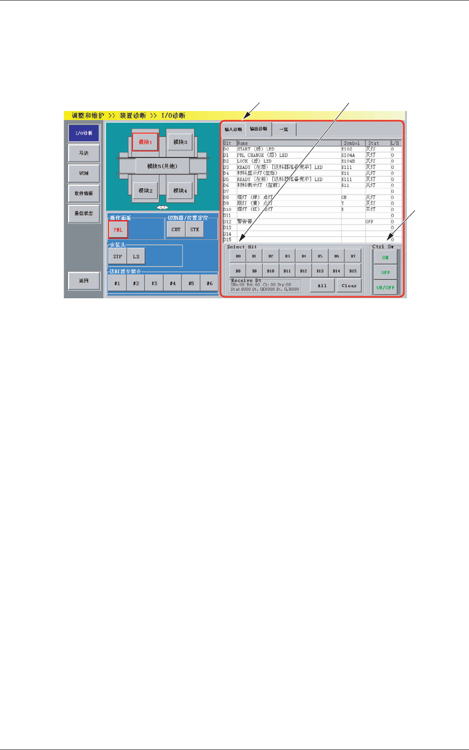 选择进行输出诊断的 Bit 按钮。按下按钮,便红色显示相应于