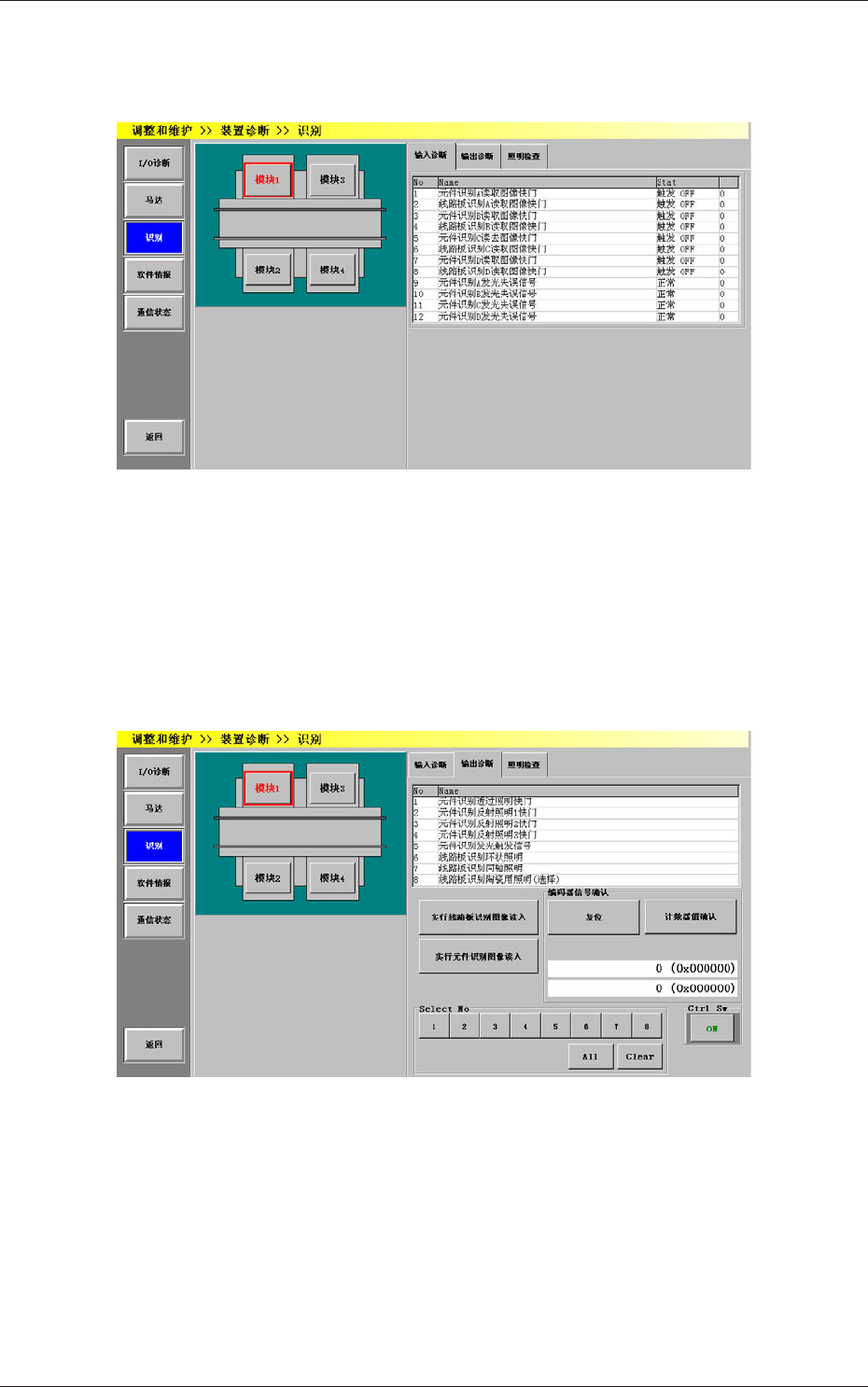 输入诊断 显示出用横梁选择按钮选择的横梁的元件识别及线路板识别的图像读入