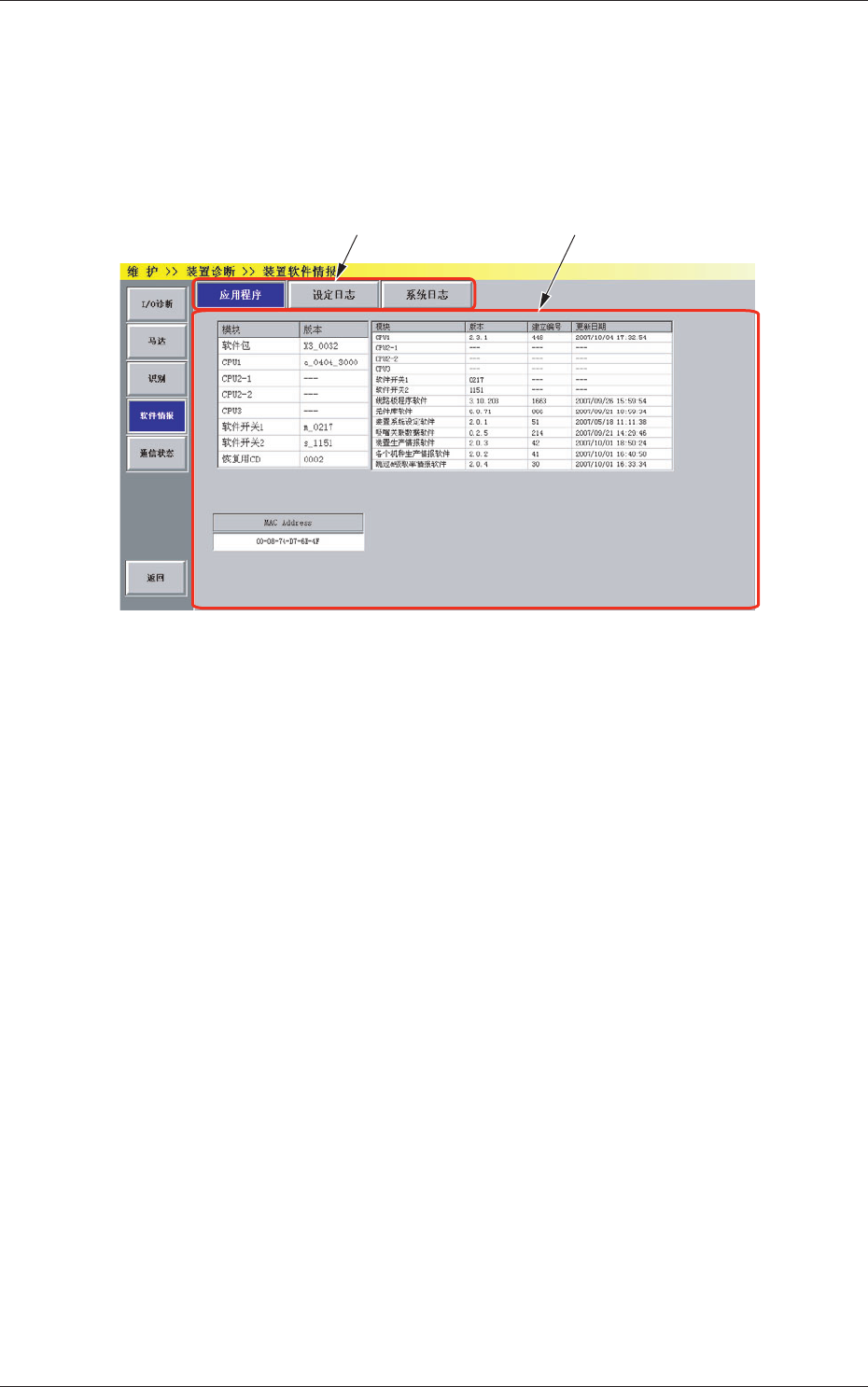 [1] 界面切换按钮 [2] “装置软件情报”界面