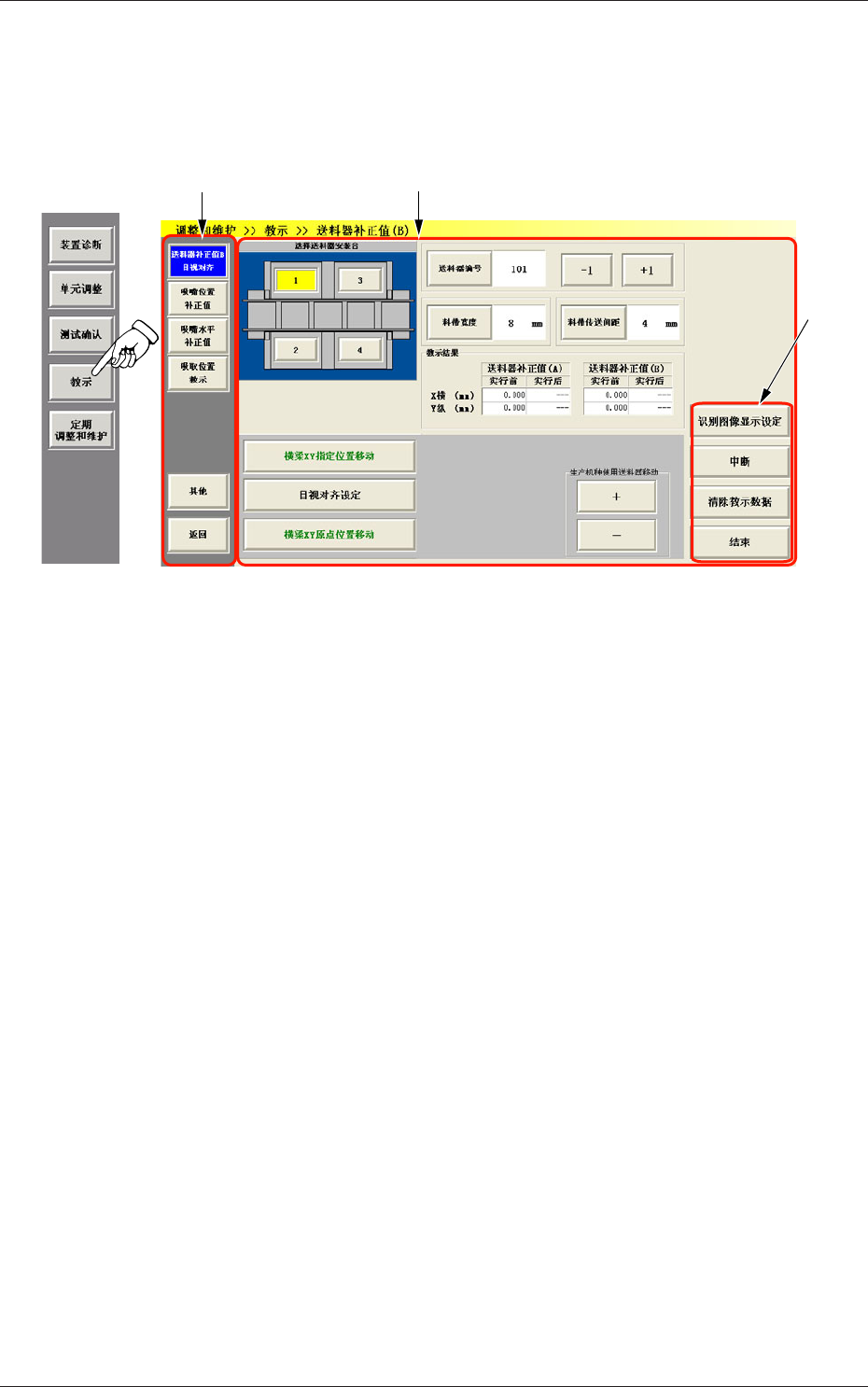 送料器补正值 (B) 目视对齐