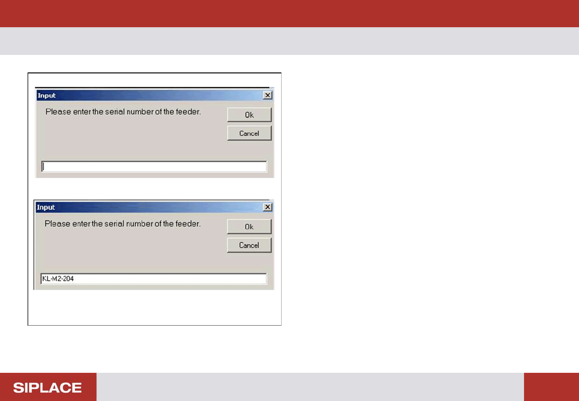 enter the serial number of the tested feeder in the dialog