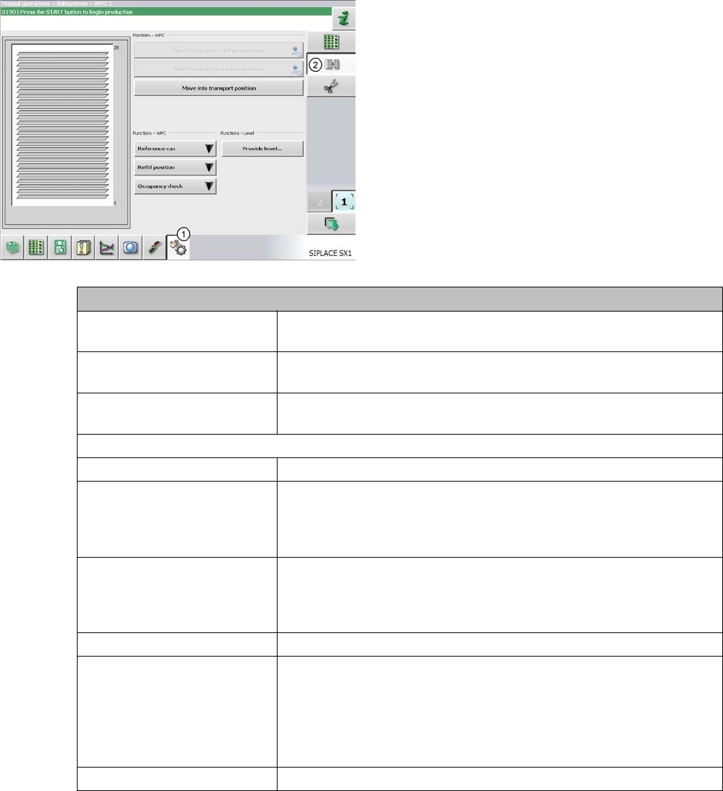 Operator Tasks Functions at the Station Computer (SR703.xx) 5.5.2 WPC5 Functions 46 Operating Manual SIPLACE WPC5/WPC6 5.5.2.2 5 . 5 . 2 . 2 " W P C " S in g le F u n c t io n s "WPC" Single Functions…