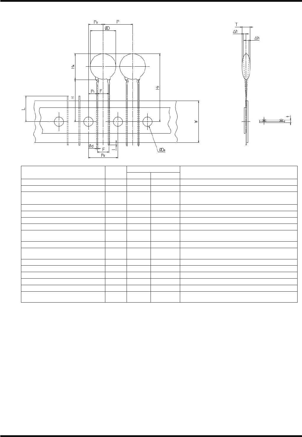 RL132 参考手册 2.5 适用元件 DA9RCC-12-160-B0 2.5-5 2. 陶瓷电容器 ( 成型引脚 ) 尺寸 (mm) 内容 记号 数值 容许范围 备注 元件直径 Ø D 13.0 最大 元件厚度 T 3.5 最大 引脚线直径 Ø d 0.6 ±0.05 软铜线是 Ø 0.6 mm 硬铜线和 CP 线是 Ø 0.5±0.05 mm 元件间距 P 12.7 ±1.0 孔间距 P 0 12.7 ±0.3 累积间距误差 = …