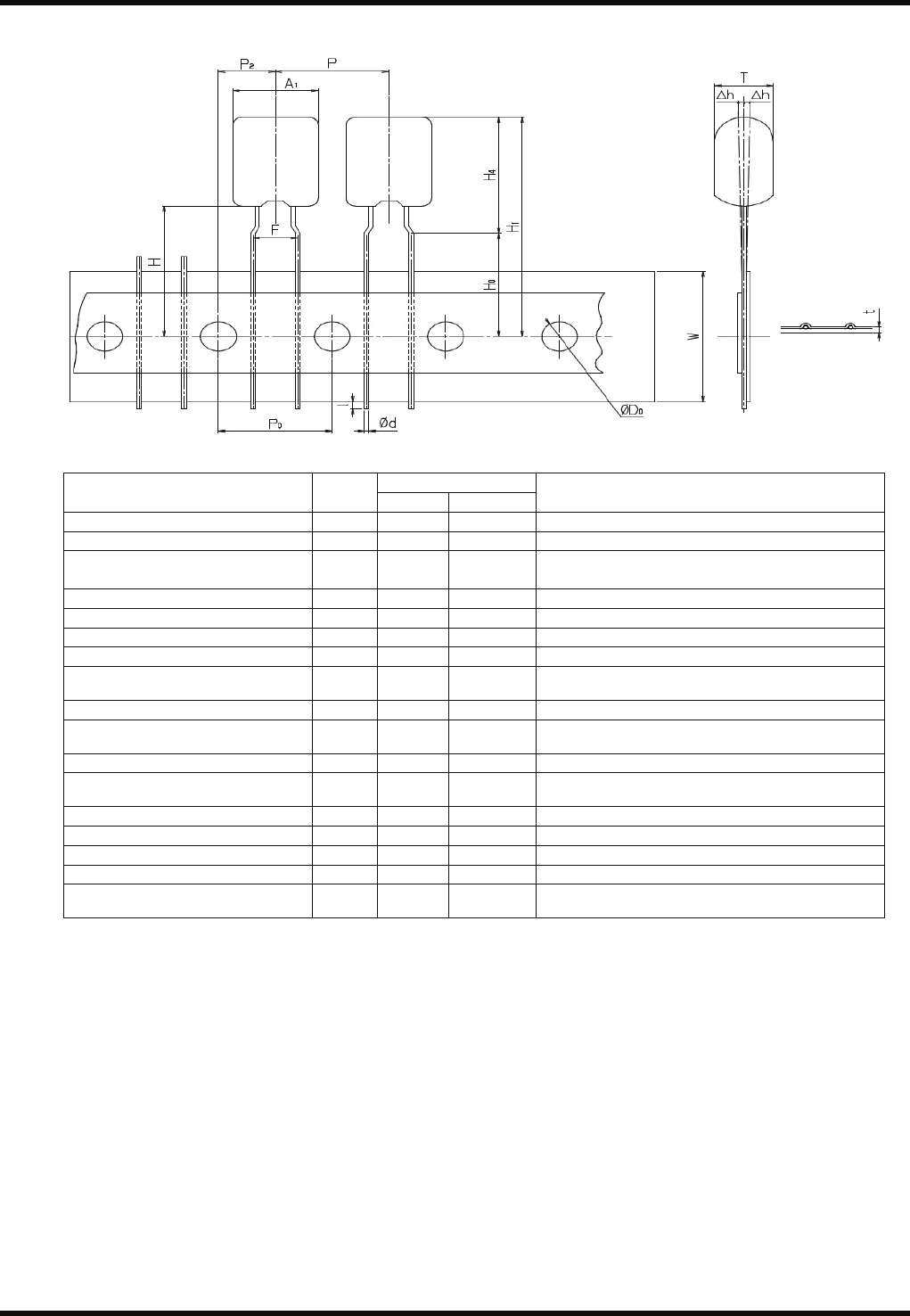 从编带中心到元件底部的高度