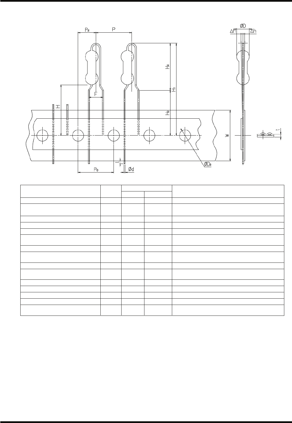 RL132 参考手册 2.5 适用元件 DA9RCC-12-160-B0 2.5-10 7. 电阻器 (A) 尺寸 (mm) 内容 记号 数值 容许范围 备注 元件直径 Ø D 4.5 最大 引脚线直径 Ø d 0.6 ±0.05 软铜线是 Ø 0.6 mm 硬铜线和 CP 线是 Ø 0.5±0.05 mm 元件间距 P 12.7 ±1.0 孔间距 P 0 12.7 ±0.3 累积间距误差 = 1.0mm /20 间距 从孔中心到元件中…