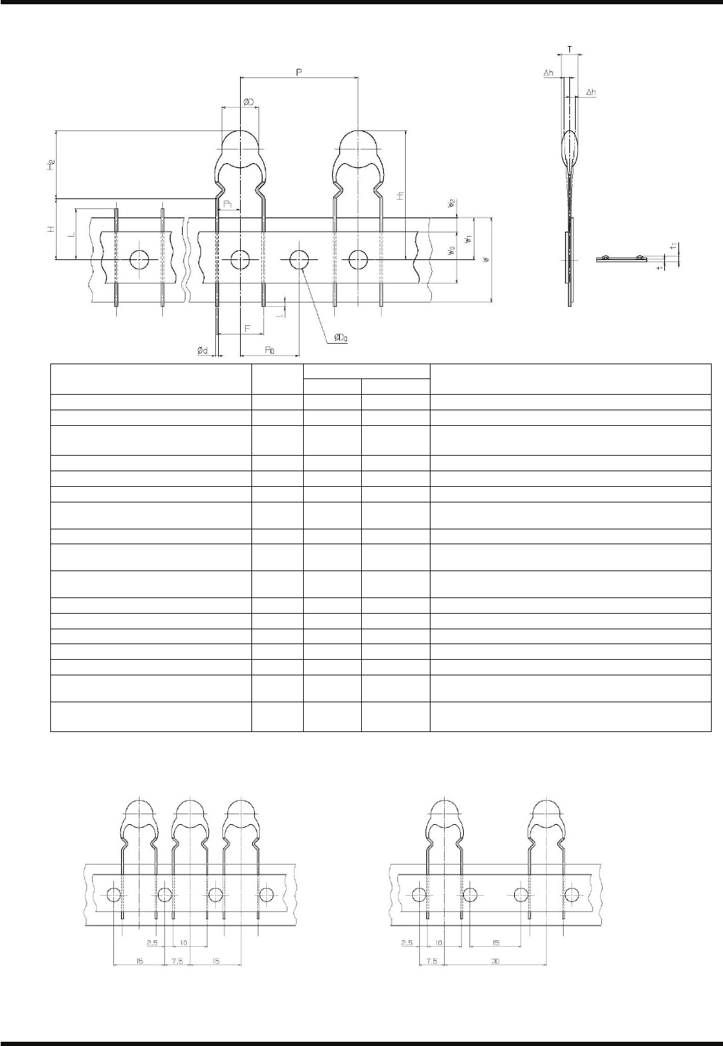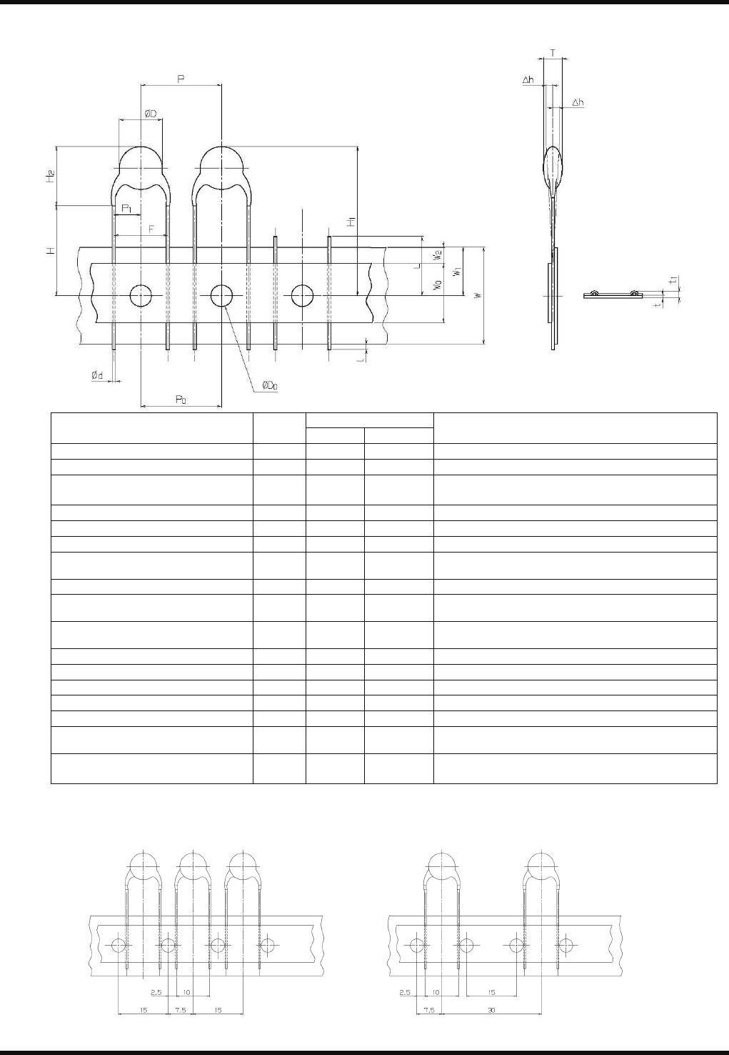 从编带中心到元件底部的高度
