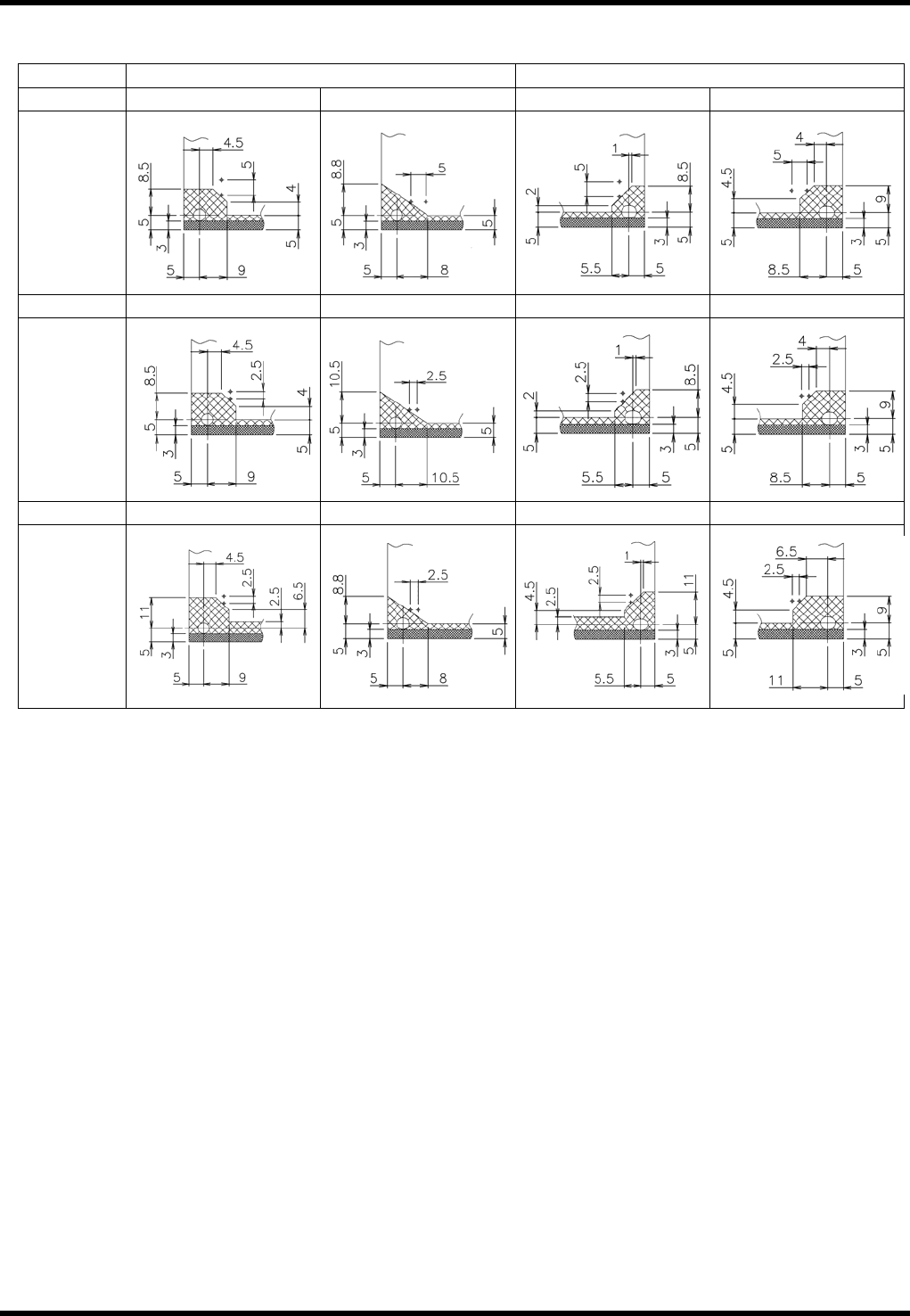 RL132 参考手册 2.6 印刷基板设计标准 DA9RCC-12-040-A0 2.6-3 N 折弯 引线折弯角度为 45 ° 时 插入跨距 A 部详细图 B 部详细图 0, 180 ° 90, -90 ° 0, 180 ° 90, -90 ° 5.0 mm 5.08 mm 0 ° 90 ° 0 ° 90 ° 2.5 mm 2.54 mm 180 ° -90 ° 180 ° -90 ° 2.5 mm 2.54 mm