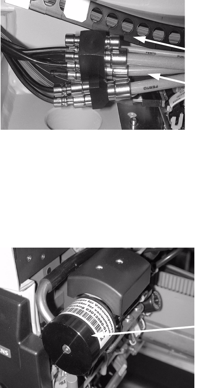 : Loosen the compressed air hoses 6 and 7 (PUN4) from the gantry distributor block and plug