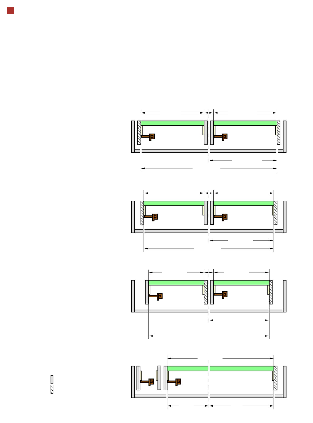 Only the settings with fixed conveyor edge on the right are shown. A setting with the stationary conveyor edge on the left is also