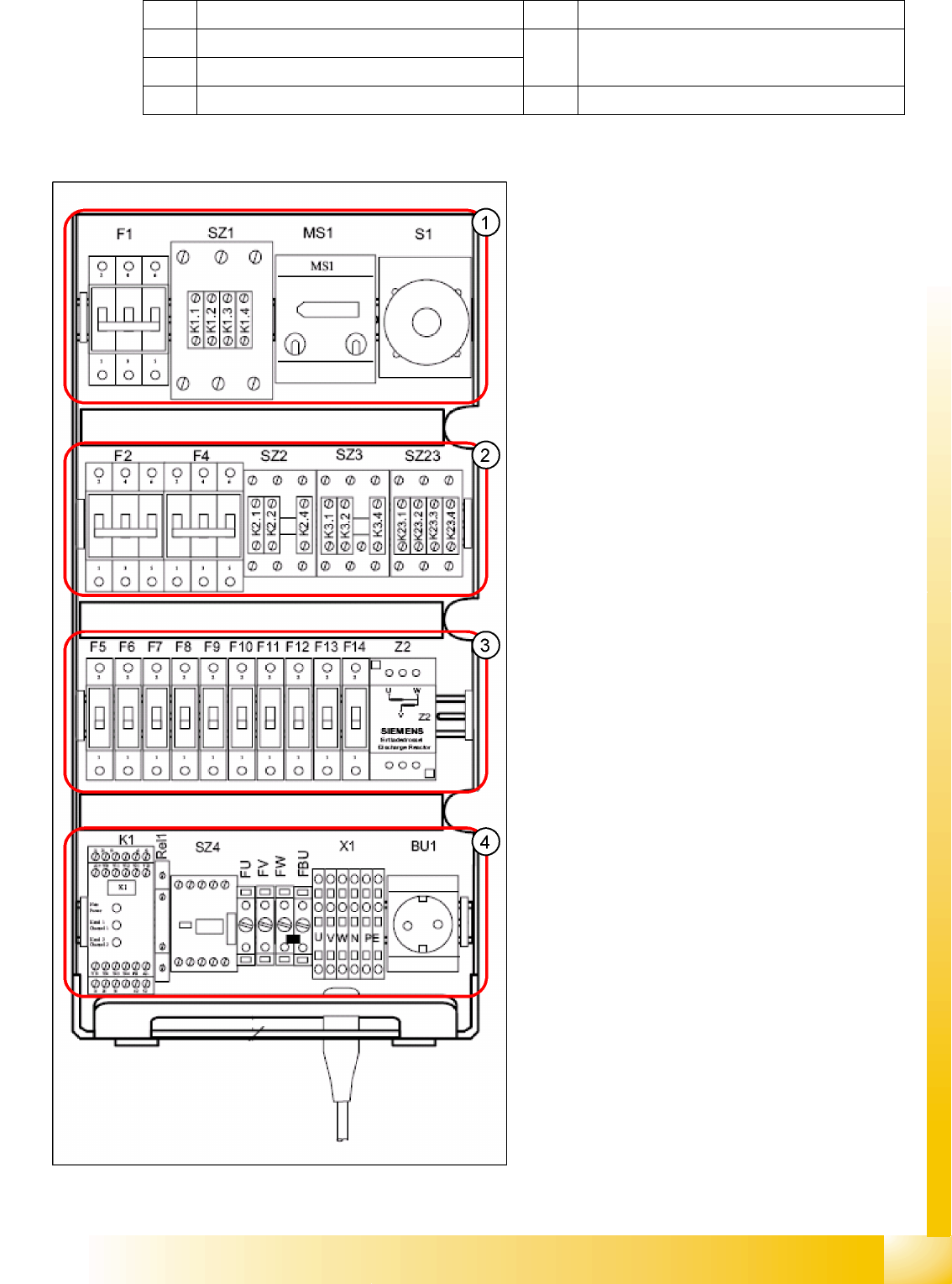 4 Terminal strip X1 10 Inrush current limiter (behind the cable duct)