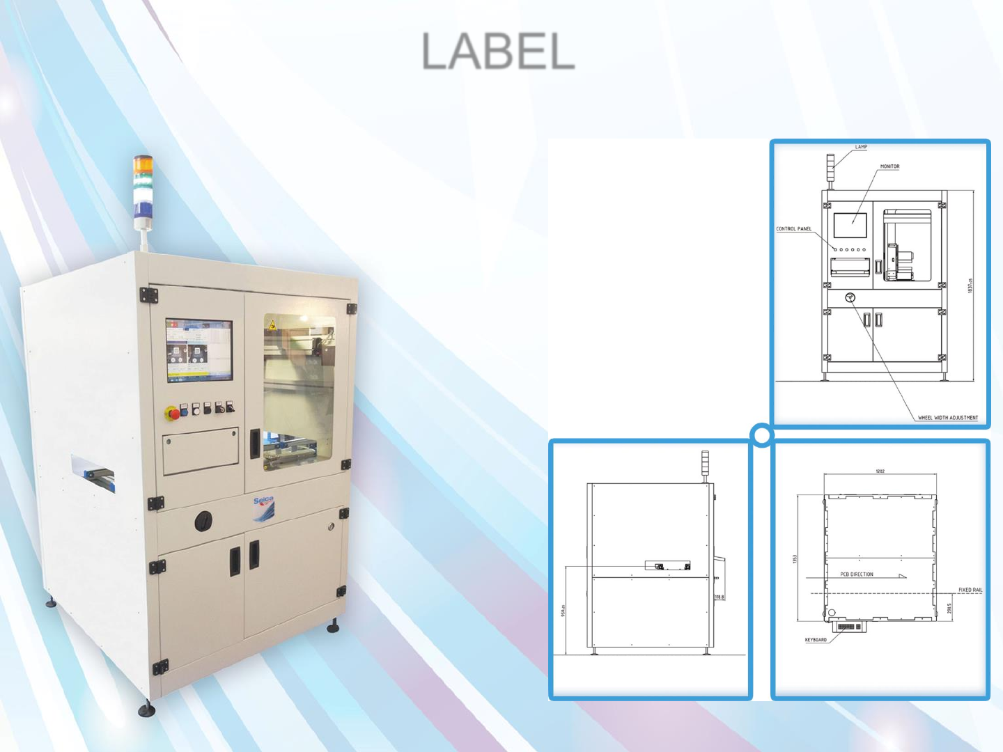 LABEL T ransport fea tures • In Line S ys t em with Flow dir ection: l eft to ri ght • Maximum P allet/PCB siz e : 500x380mm (L x W) • Minimum P allet/PCB siz e: 80x80mm ( L x W) • Thickness of Processable PCBs: from 0.8…