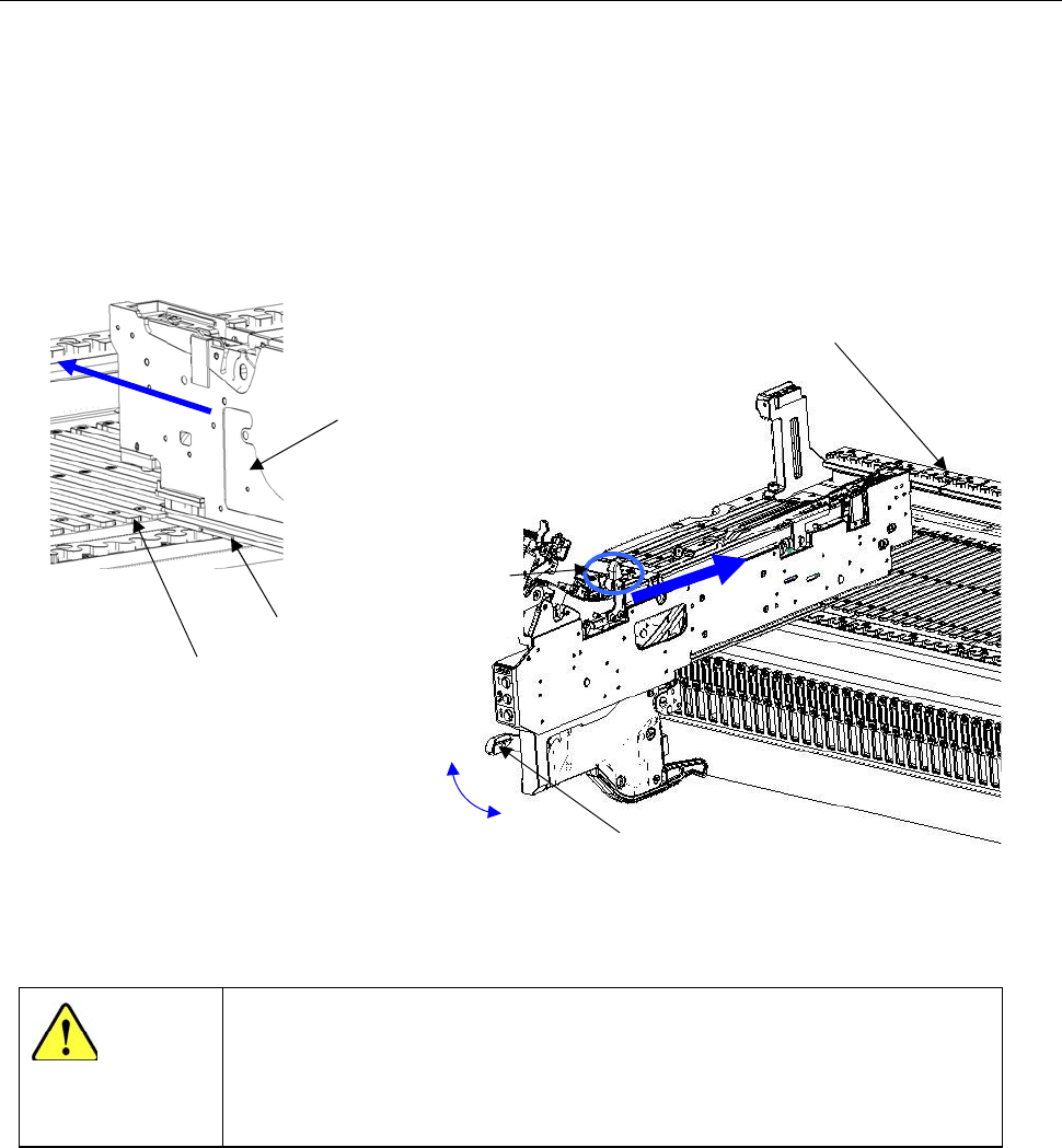 如在 XY 轴或 Head 正在动作时进行更换,托盘支架可能会接触到动作元件,危及人身