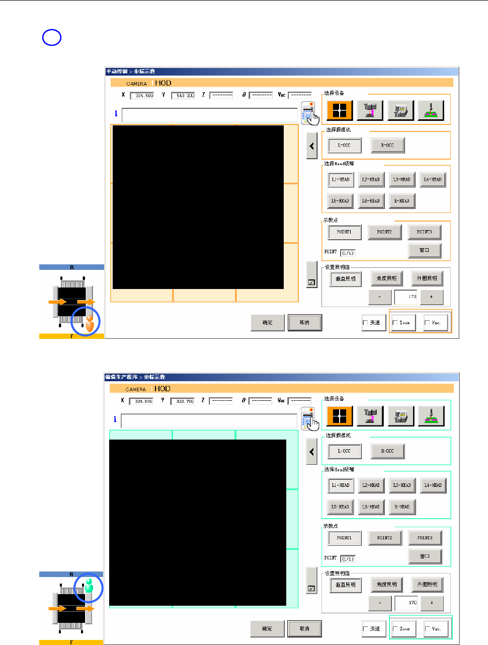 ・后面操作时的示教画面(识别色 :浅蓝色)