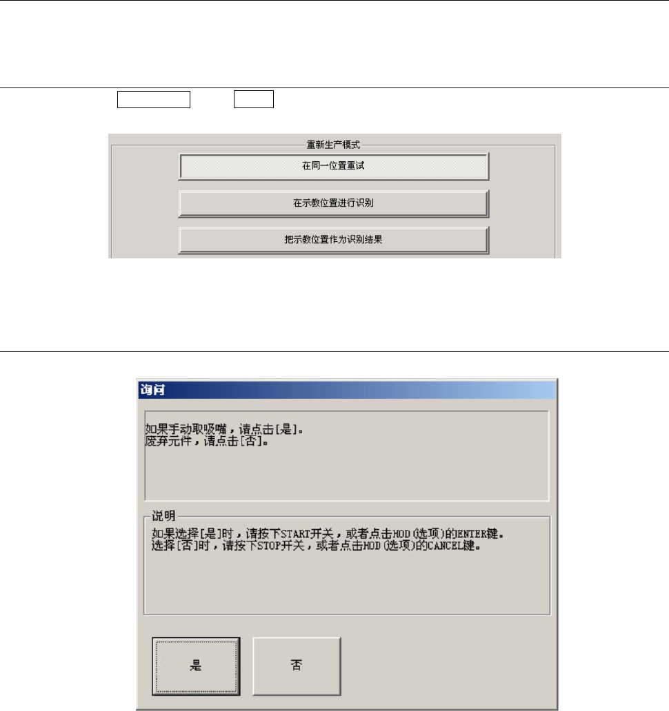 可用 HOD 的 PREVIOUS 键或 NEXT 键对编辑或生产时标记识别对话框的“重新开始模式”的单选按