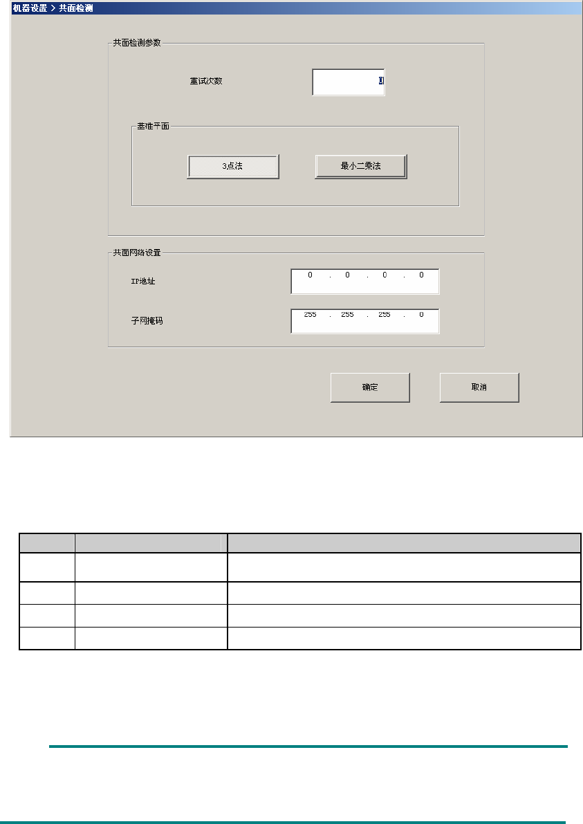 IP 地址 设置分配给共面检测的 IP 地址。