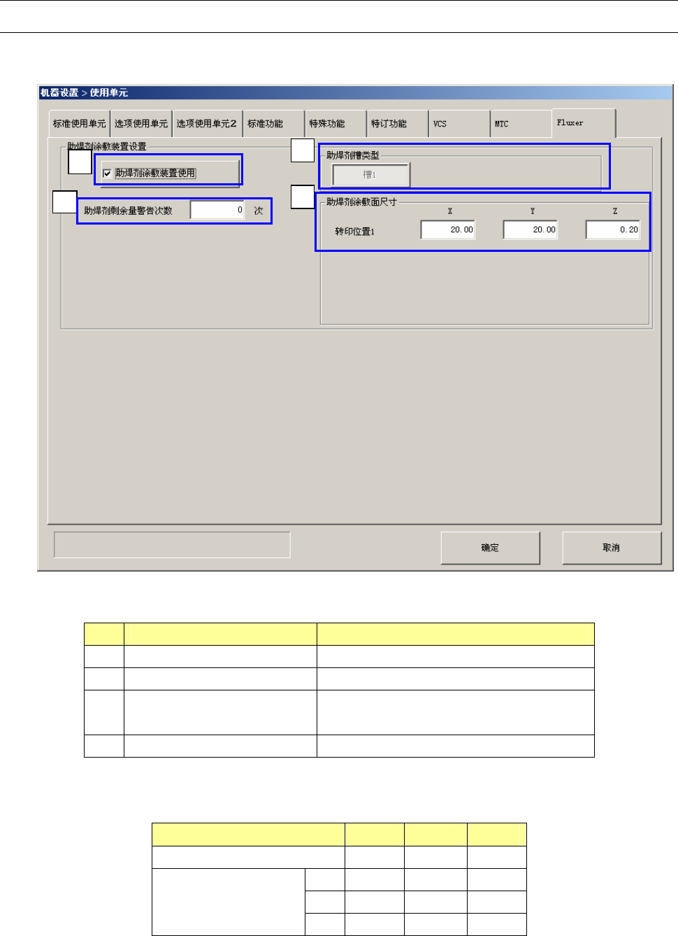 ① 是否使用(助焊剂涂敷装置) 设定使用/不使用。