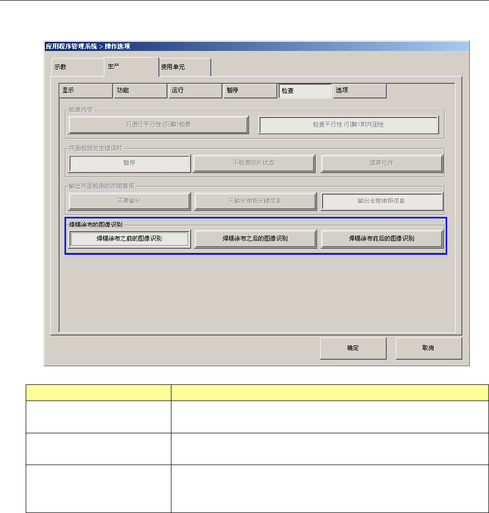 在操作选项的“生产(检查)”中,指定生产时的旋转型焊锡转印装置各项动作的时机。