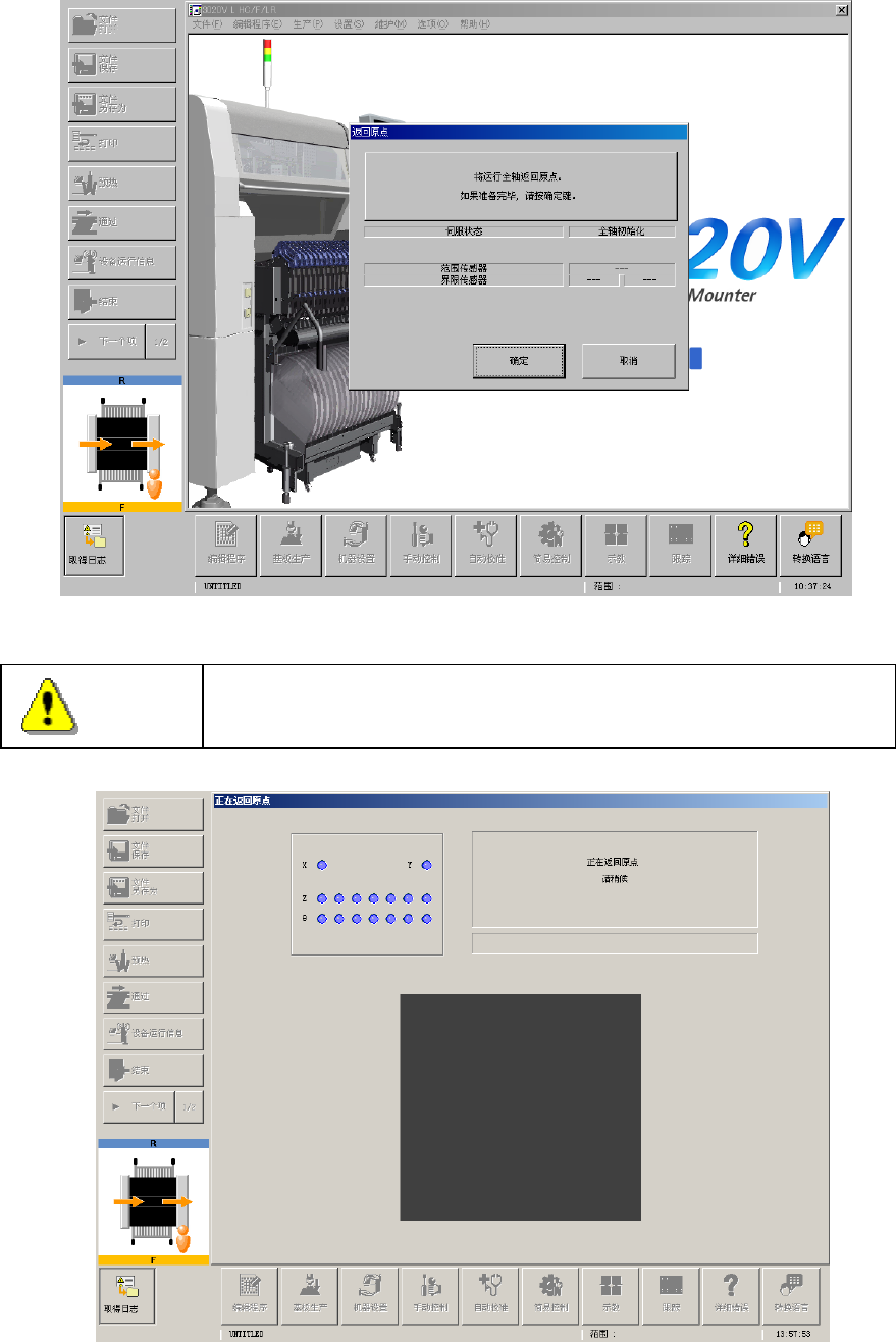 进行返回原点后,装置即刻开始运转。为避免受伤,请绝对不要将手和