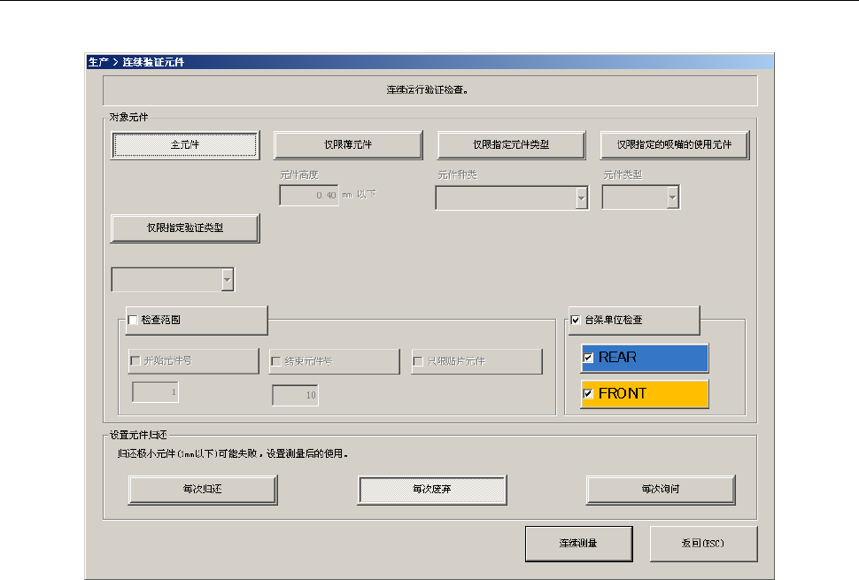 连续检查中会显示正在检查的元件内容,逐次显示执行中的进展状况和检查结果。