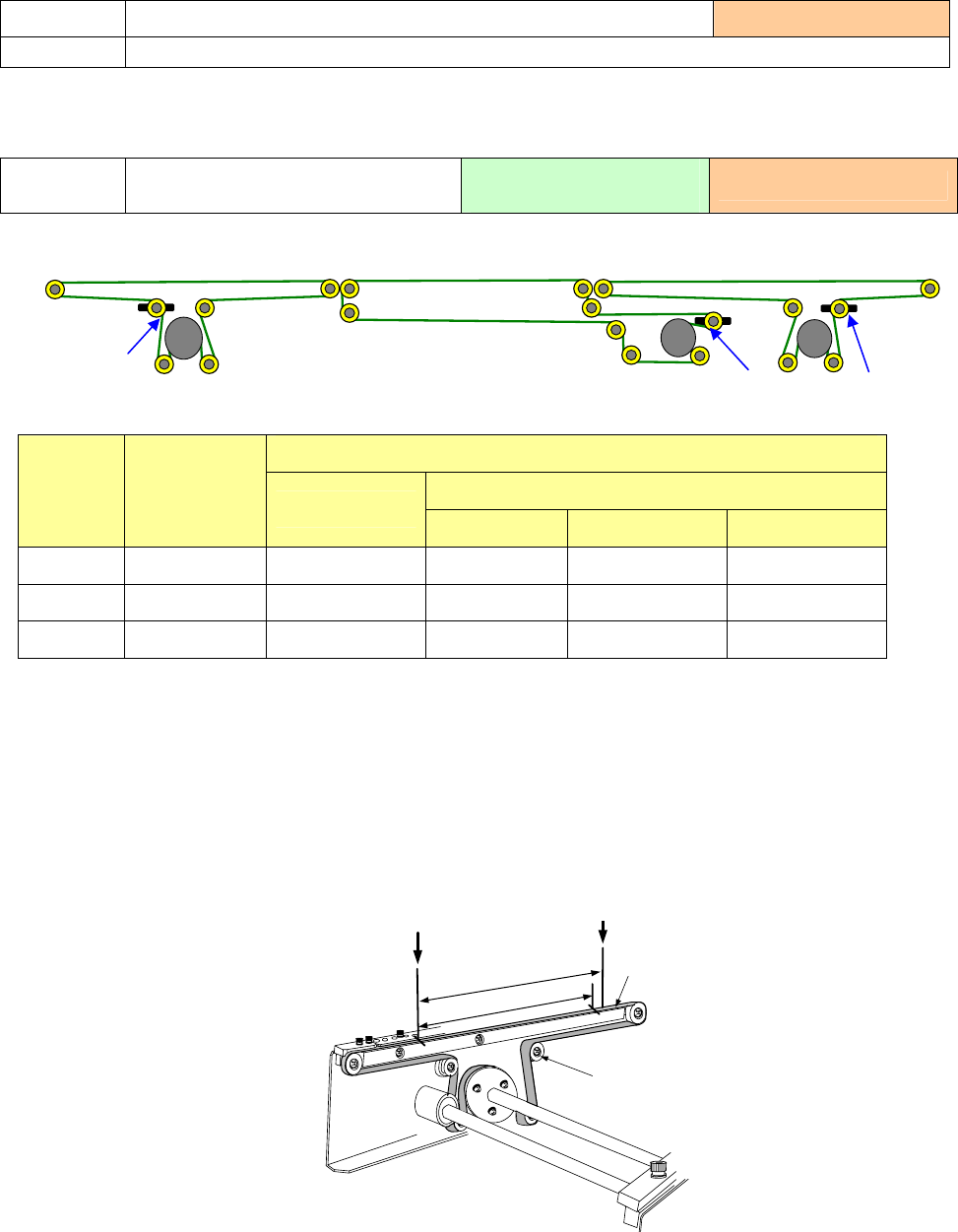 ② 按照与1)逆向步骤,转动“A部”的“传送滑轮”,撑紧传送带张力,在2处标记的间距达到201mm