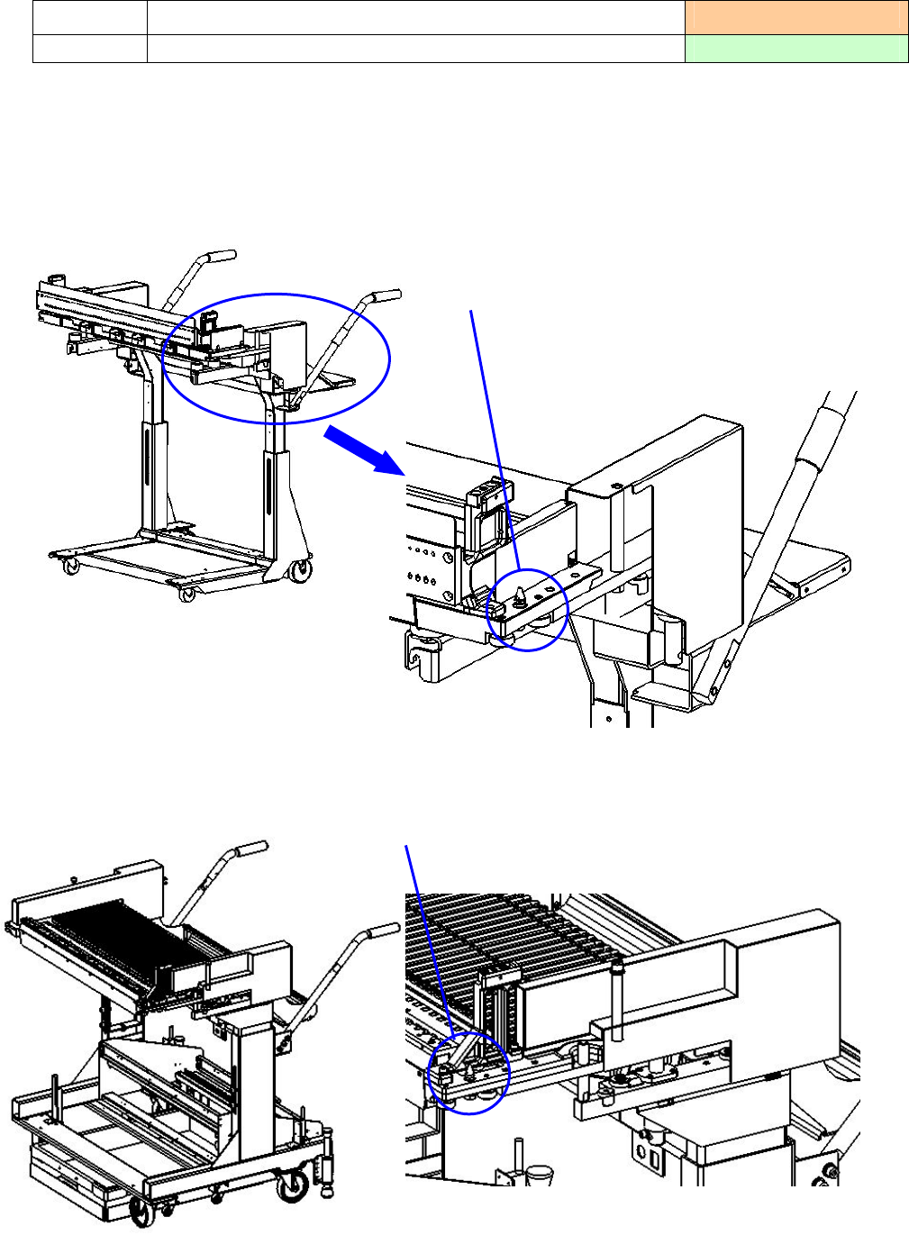 2) 请确认「台架定位销」(两侧)附近没有芯片元件等异物。