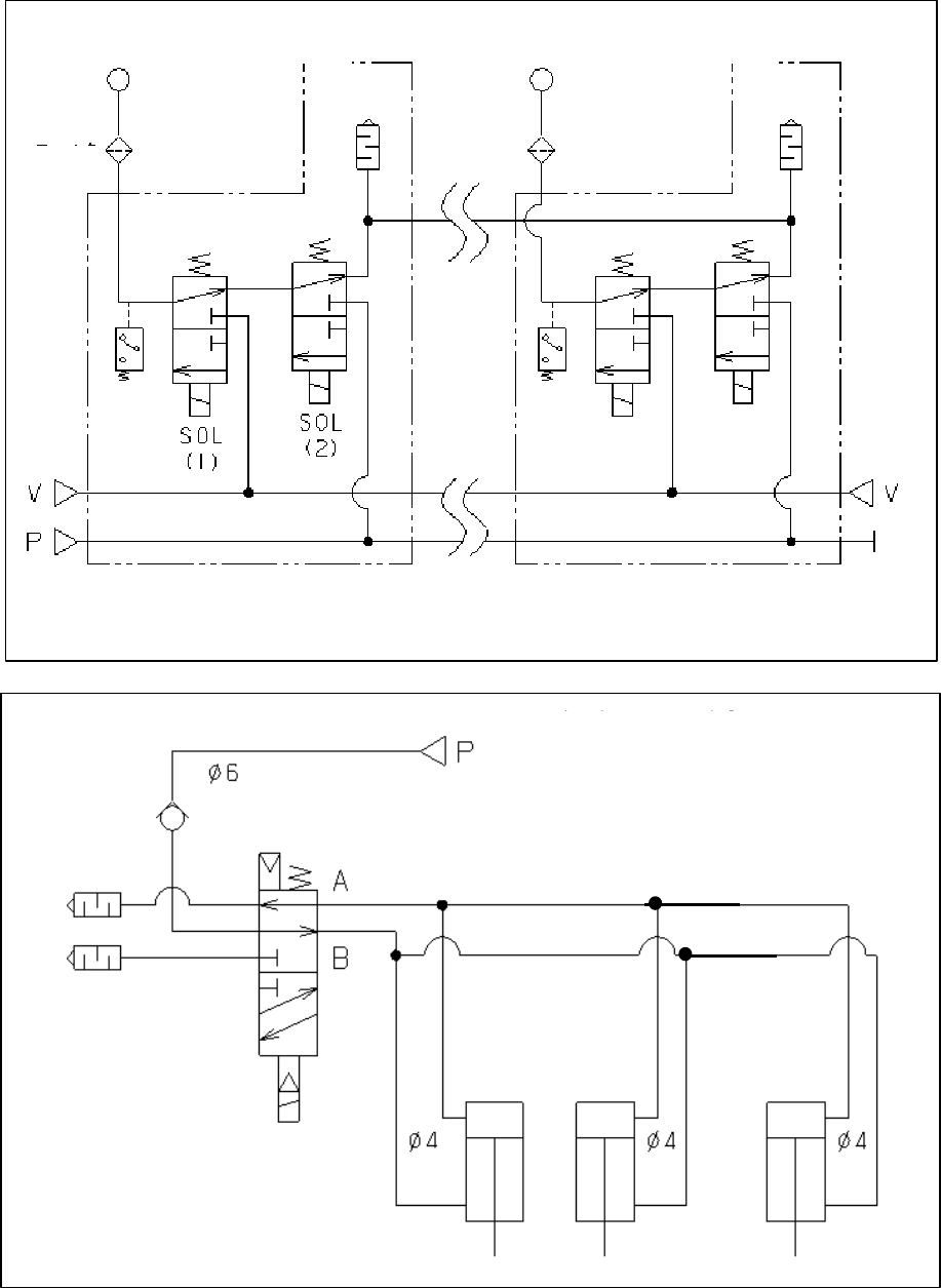 第 1 部 基本編 第 3 章 维护 3-60 (2) 管道系统图( Head ) 第 7 排 第 1 排 过滤器 吸嘴 压力 传感器 V:从负压(φ8)真空泵 V:从负压(φ8)真空泵 P:从正压(φ8)真空泵 大气开放 气缸 气缸 气缸 检查阀 P:从正压(φ6)空气单元