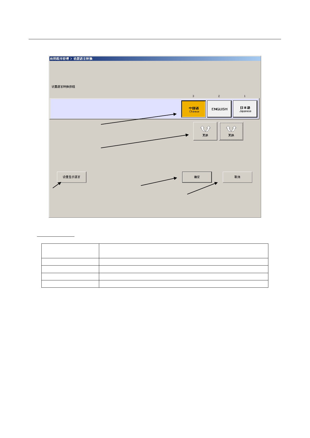 在菜单条选项中选择“显示语言设置”后,将出现如下画面。