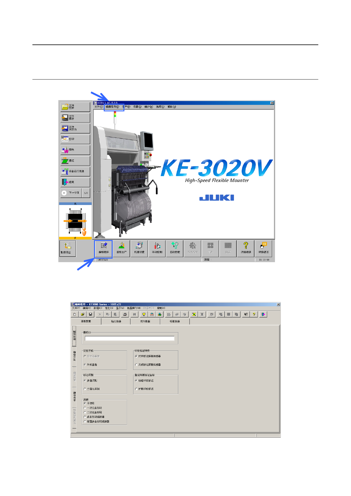 第 1 部 基本编 第 4 章 制作生产程序 4- 3 制作生产程序 生产基板时,需 要制作生产程序 数据。 启动程序编辑后 ,可制作和编辑 生产程序。 4-3-1 启动生产程序编辑 从下面的桌面画 面启动编辑程序 。 在启动编辑程序 后,制作新程序 时、或者通过 制作新程序以外 的途径进入时 ,显示如下画面 。 · 制作新程序 时 4-6