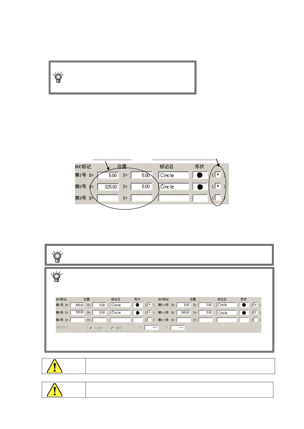 输入从基板位置基准或电路原点到各BOC标记的中心位置的尺寸。